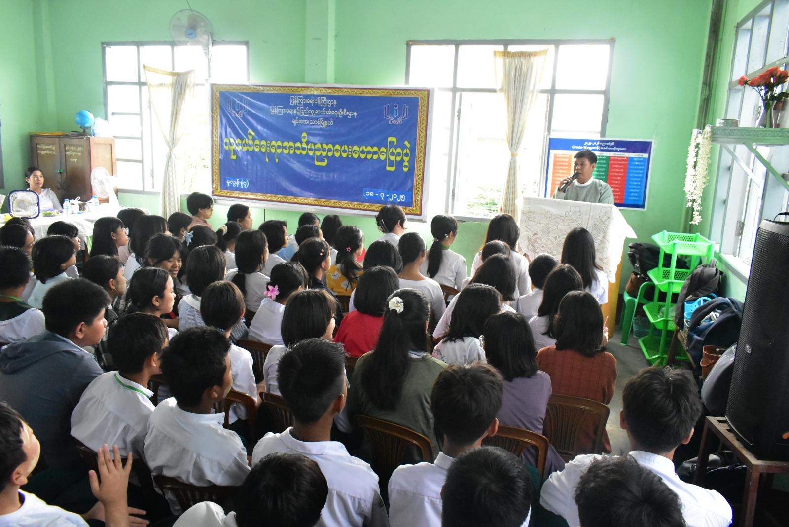 အနာဂတ်ကာလတွင် ဦးဆောင်ကြမည့် ကျောင်းသားလူငယ်များ ဗလငါးတန်နှင့်ပြည့်စုံစေရန်အတွက် ရည်ရွယ်ကာ ပြန်ကြားရေးနှင့်ပြည်သူ့ဆက်ဆံရေးဦးစီးဌာနနှင့် အခြေခံပညာဦးစီးဌာနတို့ ပူးပေါင်းကာ လူငယ်ရေးရာအသိပညာပေးဟောပြောပွဲကို မန္တလေးတိုင်းဒေသကြီး၊ ချမ်းအေးသာစံမြို့နယ်၊ အမှတ် (၇) အခြေခံပညာမူလတန်းလွန်တန်းကျောင်းရှိ အစည်းအဝေးခန်းမ၌ ယနေ့နံနက် ၉ နာရီ ၃၀ မိနစ်တွင် ကျင်းပဆောင်ရွက်ခဲ့သည်။