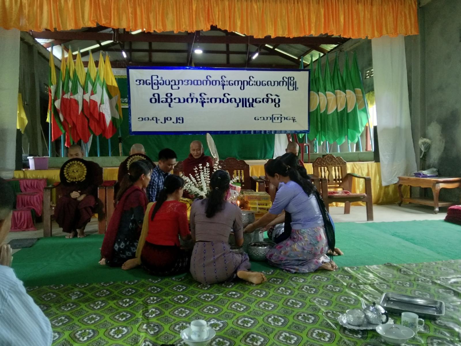 ရှေးဦးစွာ အခမ်းအနားတက်ရောက်လာကြသူများက နမောတဿသုံးကြိမ်ရွတ်ဆိုဖွင့်လှစ်၍ ပလောက်မြို့၊ ဘုရားကြီးကျောင်းတိုက်ဆရာတော် ဘဒ္ဒန္တတေဇဝရထံမှ ငါးပါးသီလခံယူခဲ့ကြသည်။