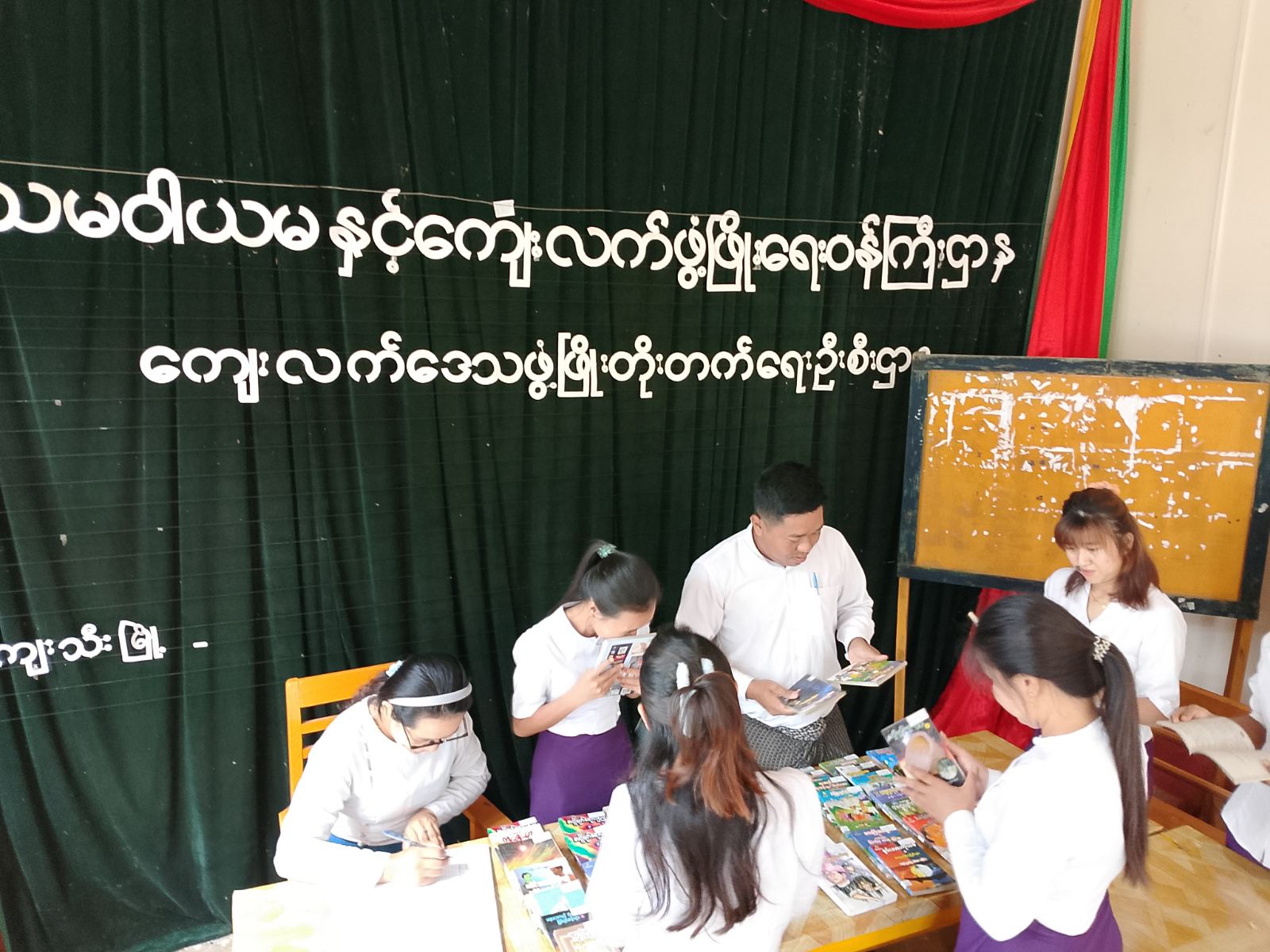 ရှမ်းပြည်နယ်(တောင်ပိုင်း)၊ ကျေးသီးမြို့နယ် ပြန်ကြားရေးနှင့်ပြည်သူ့ဆက်ဆံရေးဦးစီးဌာန ဝန်ထမ်းများက ဌာနဆိုင်ရာအသီးသီးရှိ ဝန်ထမ်းများ၊ ကလေးသူငယ်များအား Mobile Library စနစ်ဖြင့် စာအုပ်၊ စာစောင်များ လက်ဝယ်အရောက် အခမဲ့ကွင်းဆင်း ငှားရမ်းပေးလျက်ရှိရာ ယမန်နေ့ မွန်းလွဲ (၁) နာရီက မြို့နယ်ကျေးလက်ဒေသဖွံ့ဖြိုးရေးဦးစီးဌာနသို့ သွားရောက်၍ အခမဲ့ငှားရမ်းပေးခဲ့ကြောင်း သိရသည်။