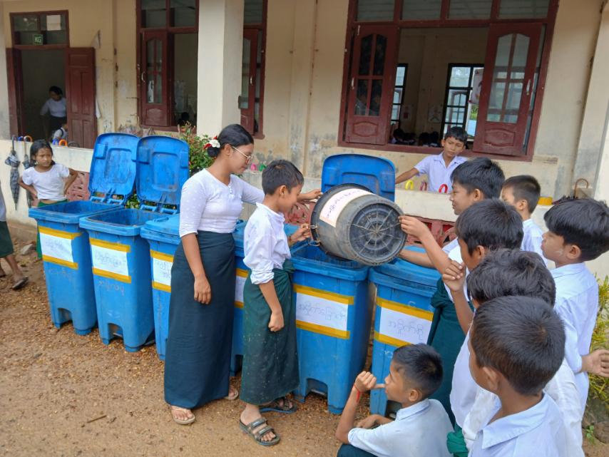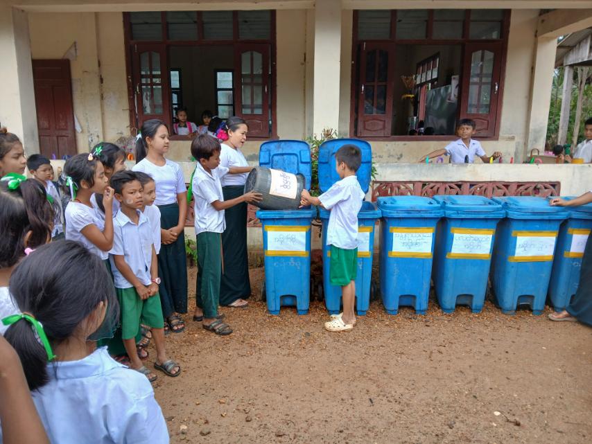 ရှေးဦးစီးစွာ အခြေခံပညာအလယ်တန်းကျောင်း(ပြည်ကြီးမဏ္ဍိုင်)မှ ဒု-မူပြ ဆရာမဒေါ်မို့မို့ဇင်က ပတ်ဝန်းကျင်ညစ်ညမ်းမှုကိုကာကွယ်ပြီး သယံဇာတအရင်းအမြစ်များကို ထိထိရောက်ရောက်အသုံးချနိုင်ရန်၊ အန္တရာယ်ကင်းသောစွန့်ပစ်မှုဖြစ်စေရန်၊ စွန့်ပစ်ပစ္စည်းများမှ ပြန်လည်အသုံးပြုနိုင်သော အရာများကိုခွဲထုတ်ခြင်း၊ သဘာဝအရင်း အမြစ်များကို ထိထိရောက်ရောက်အသုံးချနိုင်ခြင်း၊ စွန့်ပစ်ပမာဏ လျှော့ချနိုင်ခြင်း၊ ပတ်ဝန်းကျင်ညစ်ညမ်းမှု၊ ကျန်းမာရေးအန္တရာယ်ကို လျှော့ချခြင်း၊ အမှိုက်စိုများမှ သဘာဝမြေဆွေးပြုလုပ်နိုင်ခြင်း စသည့် အကျိုးကျေးဇူးများကို ရှင်းလင်းပြောကြားပြီး စွန့်ပစ်အမှိုက်ခွဲခြားစွန့်ပစ်မှုကို သရုပ်ပြစွန့်ပစ်ခဲ့ကြောင်း သိရသည်။