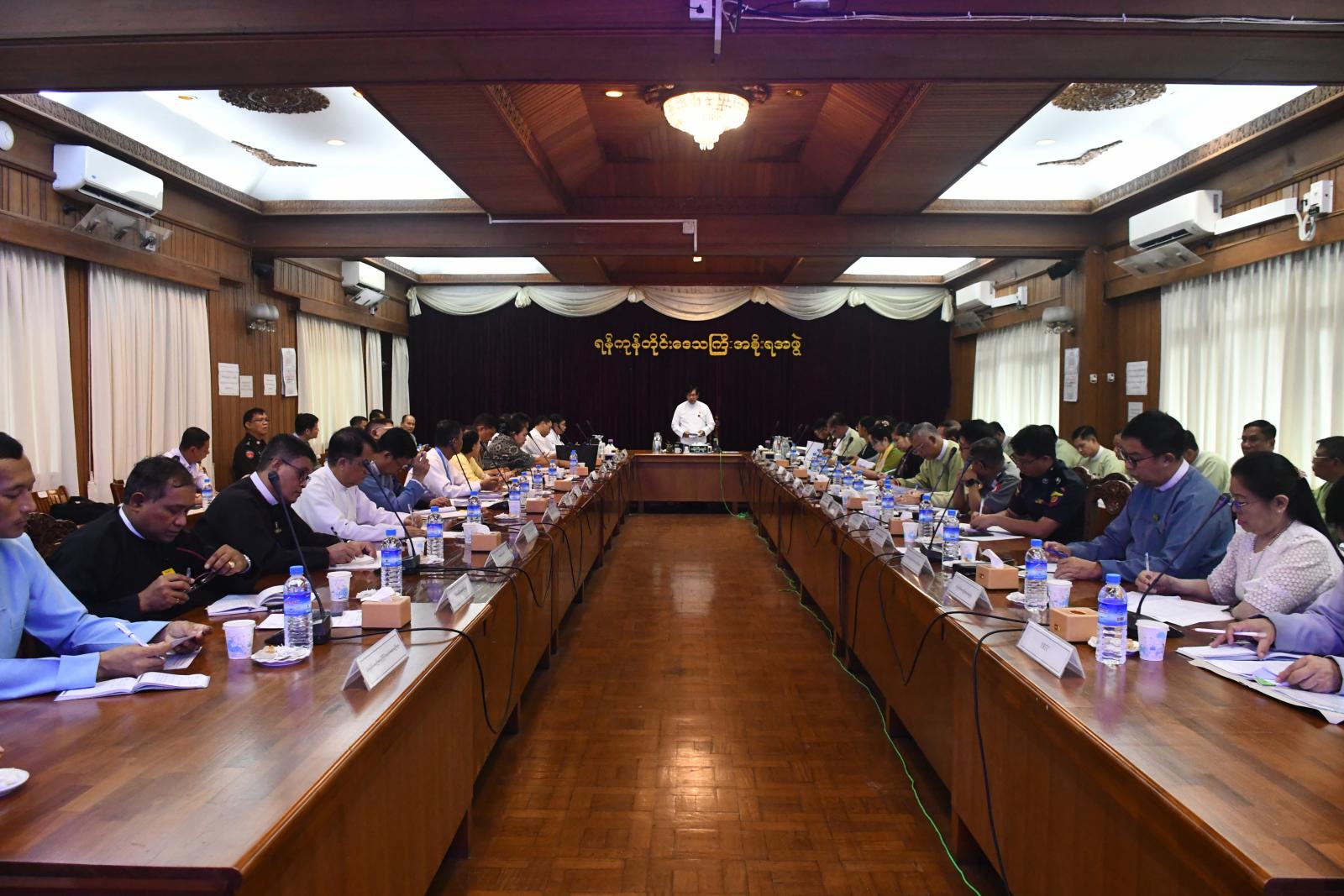 ဦးစွာ ရန်ကုန်တိုင်းဒေသကြီးအစိုးရအဖွဲ့ဝန်ကြီးချုပ် ဦးစိုးသိန်းက အဖွင့်အမှာစကားပြောကြားရာ ရန်ကုန်တိုင်းဒေသကြီးတွင်ကျင်းပမည့် ရွေးကောက်ပွဲကို ချွတ်ယွင်းအားနည်းချက်မရှိဘဲ အောင်မြင်စွာကျင်းပနိုင်ရေးအတွက် တာဝန်ရှိသူများက ဝိုင်းဝန်းကြိုးပမ်းဆောင်ရွက်ရန်၊ ရန်ကုန်တိုင်းဒေသကြီးအနေဖြင့် ဖွဲ့စည်းပေးရန်ကျန်ရှိနေသည့် ခရိုင်/မြို့နယ်အဆင့် လုပ်ငန်းအဖွဲ့များ၏ အဖွဲ့ဝင် ဆရာ/ ဆရာမများ၊ ခရိုင်/မြို့နယ်အဆင့် နည်းပညာအထောက်အကူပြု အဖွဲ့များ ဖွဲ့စည်းရန် ဆရာ/ ဆရာမအင်အား၊ အမည်စာရင်းများကို တာဝန်ရှိသူများက အချိုးကျအင်အားအတိုင်း အမြန်ဆုံးပေးပို့ဆောင်ရွက်ရန်၊ မြို့နယ်အသီးသီးတွင် ဖွင့်လှစ်နေသည့် မြန်မာအီလက်ထရောနစ် မဲပေးစက်(MEVM) ဆိုင်ရာသင်တန်းများကို အောင်မြင်စွာဖွင့်လှစ်နိုင်ရေး စနစ်တကျကြီးကြပ်ပြီး လိုအပ်ချက်များကို ဝိုင်းဝန်းပံ့ပိုးဆောင်ရွက်ကြရန်နှင့် MEVM စက်များ ထားသိုထိန်းသိမ်းရာတွင်လည်းကောင်း၊ ရွေ့ပြောင်းသယ်ဆောင်ရာတွင်လည်းကောင်း လုံခြုံမှုရှိစေရေးအတွက် သက်ဆိုင်ရာအုပ်ချုပ်ရေး၊ လုံခြုံရေးဌာန/အဖွဲ့အစည်းအဆင့်ဆင့်က အထူးဂရုပြုဆောင်ရွက်ပေးကြရန် စသည်တို့ကိုပြောကြားသည်။