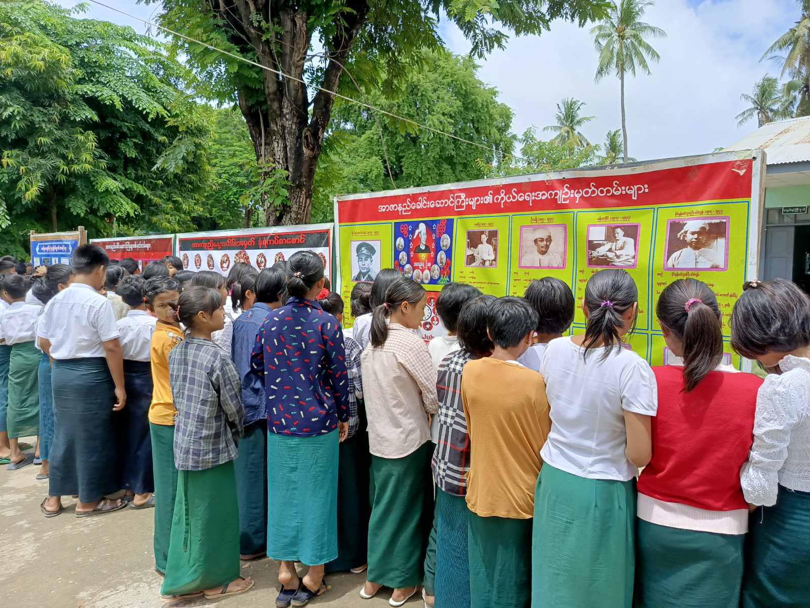 ထို့နောက် ပြန်ကြားရေးနှင့်ပြည်သူ့ဆက်ဆံရေးဦးစီးဌာန လယ်ဝေးမြို့နယ်ရုံးမှ ခင်းကျင်းပြသထားသည့် အာဇာနည်နေ့အထိမ်းအမှတ် နံရံကပ်စာစောင်များကို ကျောင်းသား၊ ကျောင်းသူများက စိတ်ဝင်တစား ကြည့်ရှုခဲ့ကြကြောင်း သိရသည်။