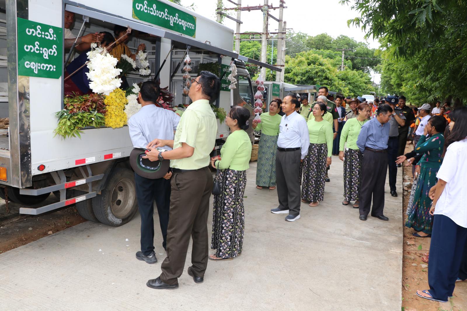 ထို့နောက် တိုင်းဒေသကြီး ဝန်ကြီးချုပ်နှင့် တာဝန်ရှိသူများက စုပေါင်းသန့်ရှင်းရေးလုပ်ငန်းများ ဆောင်ရွက်ခဲ့ကြသည့် ဝန်ထမ်းများနှင့် ဆရာ/ဆရာမများများအား တိုင်းဒေသကြီးစားသုံးသူရေးရာဦးစီးဌာန၊ အထွေထွေအုပ်ချုပ်ရေးဦးစီးဌာနနှင့် စည်ပင်သာယာရေးအဖွဲ့တို့မှ စားသုံးဆီများ၊ ဆန်များနှင့် ဟင်းသီးဟင်းရွက်များအား ဈေးနှုန်းသက်စွာဖြင့်ရောင်းချပေးနေမှုများအား ကြည့်ရှုအားပေးခဲ့ကြပြီး သန့်ရှင်းရေးလုပ်ငန်းများ ဆောင်ရွက်ခဲ့ကြသူများအား ကော်ဖီနှင့်မုန့်များဖြင့် ဧည့်ခံကျွေးမွေးခဲ့သည်။