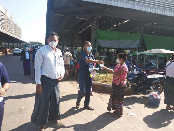 ရန်ကုန်တိုင်းဒေသကြီး၊ မြောက်ပိုင်းခရိုင်၊ အင်းစိန်မြို့နယ်၌ ကိုဗစ်-၁၉ ရောဂါ ကူးစက်ပျံ့နှံ့မှုမရှိစေရန် ရည်ရွယ်၍ အင်းစိန်မြို့နယ်၊ တညင်းကုန်းဈေးတွင် ကိုဗစ်-၁၉ ရောဂါ ကြိုတင်ကာကွယ်ရေးအတွက် ဈေးရောင်းချသူများနှင့် ဈေးဝယ်လာသူများအား နှာခေါင်းစည်း(၂၀၀၀)ကျော်ကို ယမန်နေ့ နံနက်(၈)နာရီ အချိန်က တာဝန်ရှိသူများက အခမဲ့ဖြန့်ဝေခဲ့ကြောင်း သိရသည်။