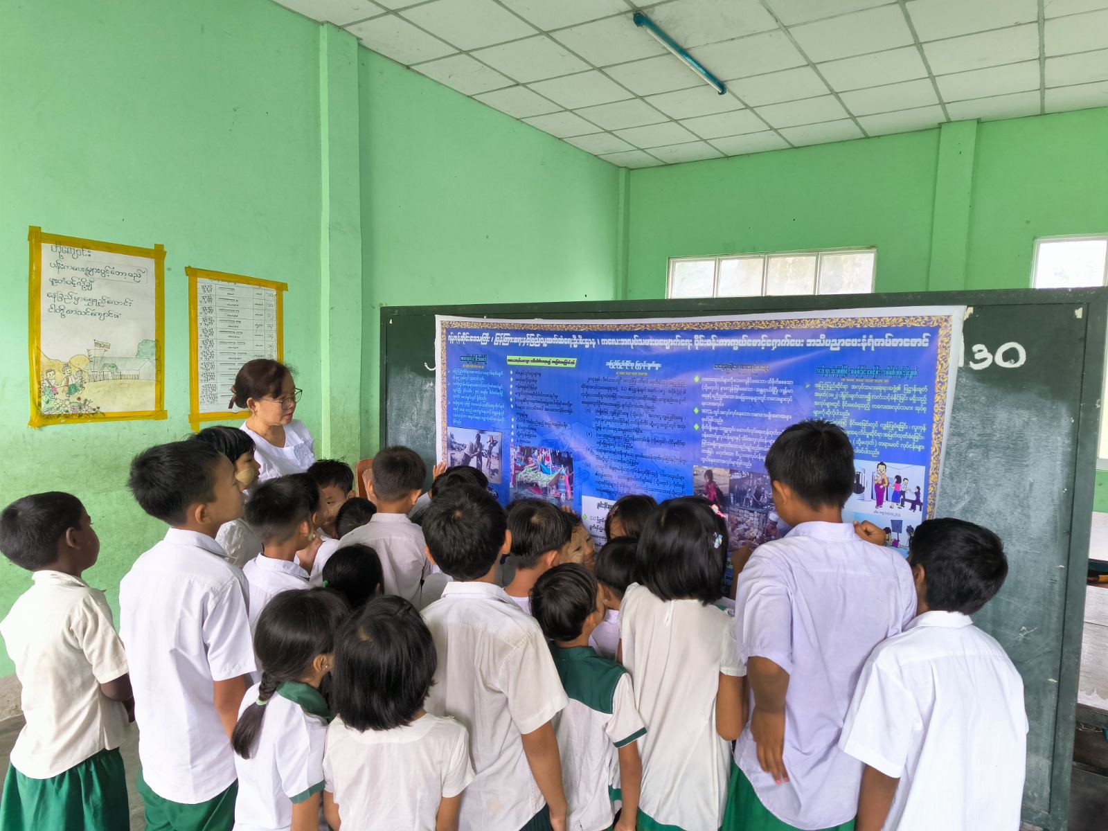 ထို့နောက် ပြန်ကြားရေးနှင့်ပြည်သူ့ဆက်ဆံရေးဦးစီးဌာနမှခင်းကျင်းပြသထားသော ကလေးအလုပ်သမားပပျောက်ရေးအသိပညာပေး နံရံကပ်စာစောင်နှင့် သုတ၊ ရသ စာအုပ် စာစောင်များကို ကျောင်းသား၊ ကျောင်းသူများက စိတ်ပါဝင်စားစွာလေ့လာကြည့်ရှုခဲ့ကြကြောင်း သိရသည်။