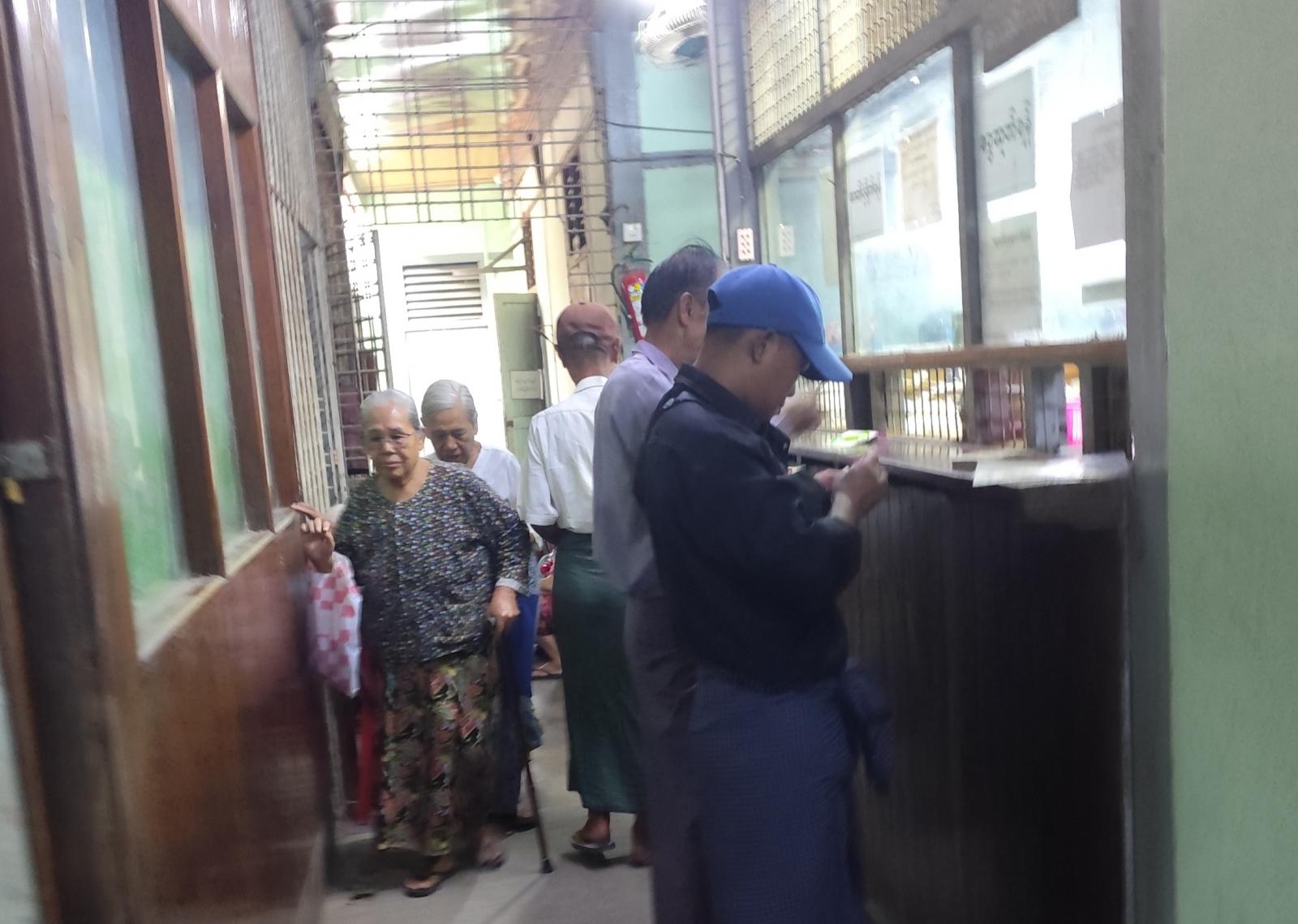 ရန်ကုန်တိုင်းဒေသကြီး၊ မရမ်းကုန်းခရိုင်၊ လှိုင်မြို့နယ် မြန်မာ့စီးပွားရေးဘဏ်တွင် အငြိမ်းစားဝန်ထမ်းများအား ပင်စင်လစာများကို ဇူလိုင်လ ၂၁ ရက်နေ့မှစတင်၍ ထုတ်ပေးလျက်ရှိကြောင်း သိရသည်။