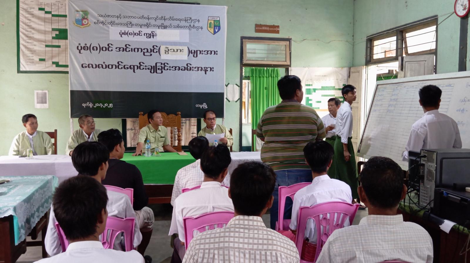 အဆိုပါအခမ်းအနားသို့ ခရိုင်စီမံအုပ်ချုပ်ရေးအဖွဲ့ဥက္ကဋ္ဌ ဦးဝင်းကိုကို၊ ခရိုင်သစ်တောဦးစီးဌာန လက်ထောက်ညွှန်ကြားရေးမှူး ဦးထွန်းကျော်စိုးနှင့် လေလံကော်မတီဝင်များ၊ ခရိုင်နှင့်မြို့နယ်သစ်တောဦးစီးဌာနဝန်ထမ်းများ၊ လေလံဆွဲဝယ်ယူသူများ တက်ရောက်ခဲ့ကြောင်း သိရသည်။