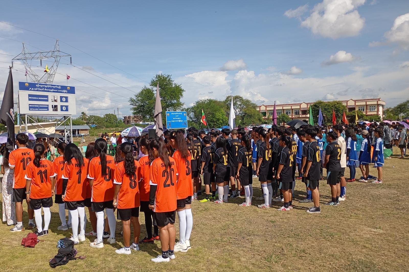 ရှေးဦးစွာ အားကစားသမားများက နိုင်ငံတော်အလံအားအလေးပြုကာ အားကစားသစ္စာအဓိဌာန်ရွတ်ဆိုခဲ့ပြီး ပါမောက္ခချုပ်ဒေါက်တာခင်မောင်ချင်းနှင့် အားကစားကော်မတီအဖွဲ့မှ တာဝန်ရှိသူတစ်ဦးက ပြိုင်ပွဲများ ကျင်းပပြုလုပ်ရခြင်း၏ ရည်ရွယ်ချက်များနှင့် ပြိုင်ပွဲစည်းမျဉ်းစည်ကမ်းများ အကြောင်းရှင်းလင်း ပြောကြားခဲ့ကာ အားကစားအသင်းများအလိုက် မှတ်တမ်းဓာတ်ပုံများ ရိုက်ကူးခဲ့ပြီး ကျောင်းသူလေးများက ဖျော်ဖြေရေး အစီအစဉ်များဖြင့် သီဆိုဖျော်ဖြေဖွင့်လှစ်ခဲ့ကြောင်း သိရသည်။