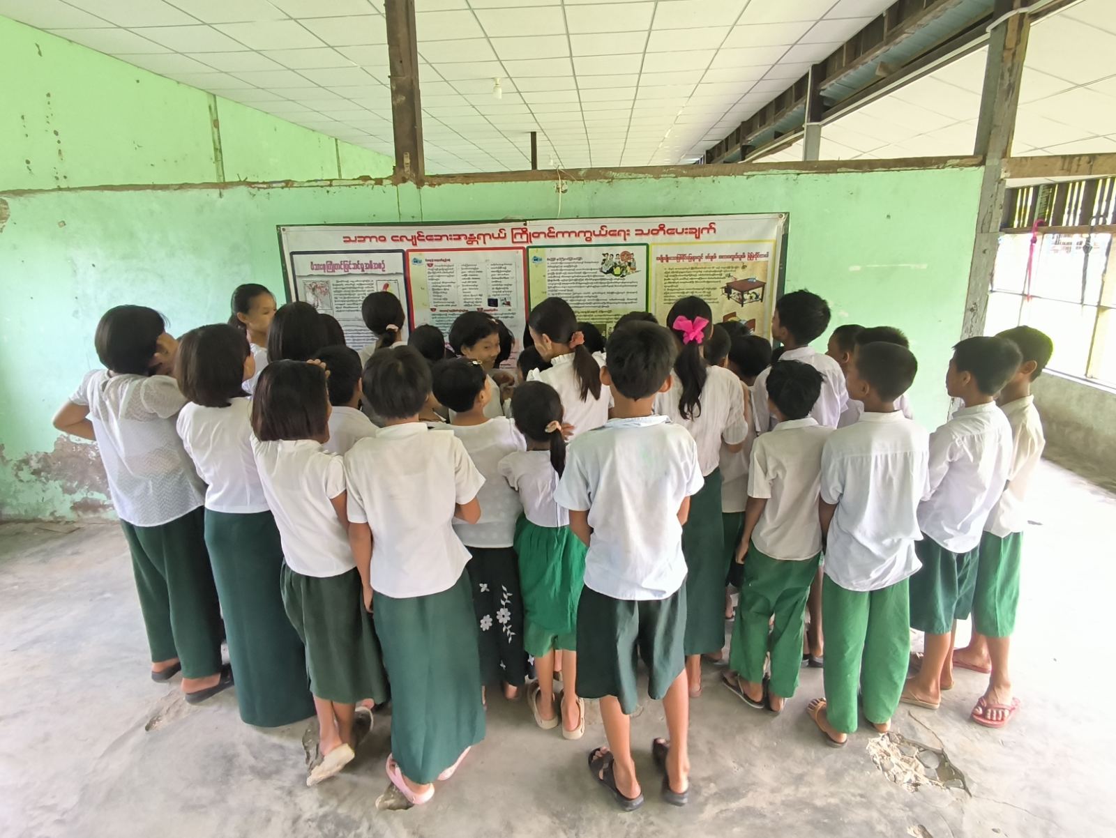 ထိုသို့ ရှင်းလင်းပြောကြားပြီးနောက် သဘာဝငလျင်ဘေးအန္တရာယ် ကြိုတင်ကာကွယ်ရေး နံရံကပ်စာစောင်များကို ပြသခဲ့ရာ ကျောင်းသား၊ ကျောင်းသူများက စိတ်ပါဝင်စားစွာ လေ့လာကြည့်ရှုခဲ့ကြောင်း သိရသည်။