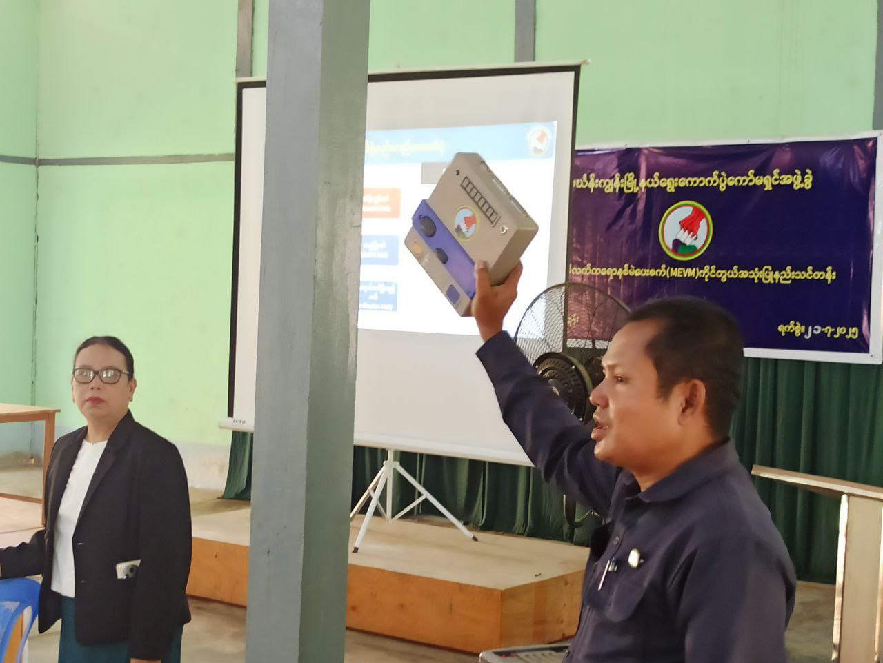 သင်တန်းတွင် မြို့နယ်ရွေးကောက်ပွဲကော်မရှင်အဖွဲ့ခွဲ မြို့နယ်စည်ပင်သာယာရေးအဖွဲ့ လက်ထောက်အုပ်ချုပ်ရေးမှူး ဦးမိုးမင်းဇော်နှင့်တာဝန်ရှိသူများက မြန်မာအီလက်ထရောနစ်မဲပေးစက် MEVM စက်အား ကျွမ်းကျင်စွာကိုင်တွယ်အသုံးပြုတတ်စေရန်နှင့် ထိန်းသိမ်းတတ်စေရန် ရည်ရွယ်၍ ဖွင့်လှစ်ခြင်းဖြစ်ကြောင်း သိရသည်။