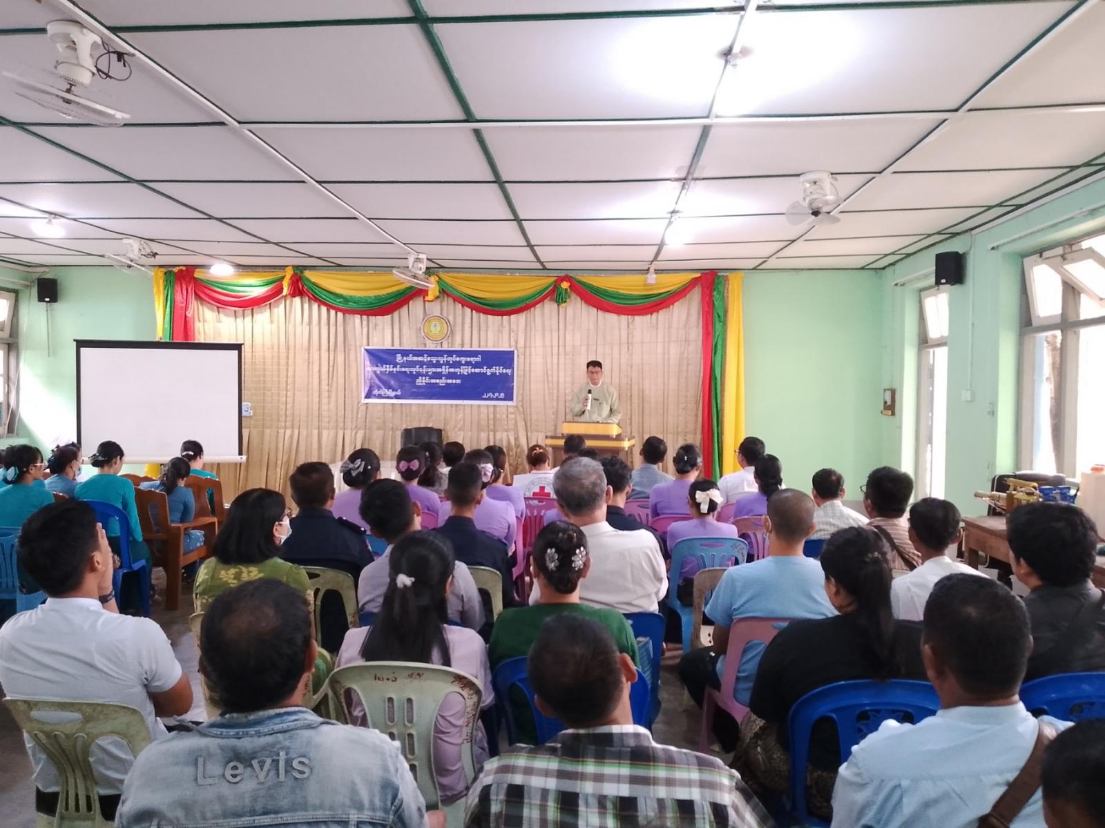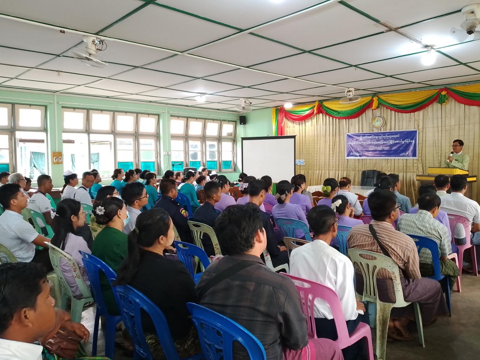 ရှေးဦးစွာ ခရိုင်စီမံအုပ်ချုပ်ရေးအဖွဲ့ဥက္ကဋ္ဌ ဦးသူအောင်နှင့် မြို့နယ်စီမံအုပ်ချုပ်ရေးအဖွဲ့ဥက္ကဋ္ဌ ဦးခင်မောင်စိုးတို့က အဖွင့်အမှာစကားပြောကြားသည်။ ထို့နောက် မြို့နယ်ပြည်သူ့ကျန်းမာရေးဦးစီးဌာနမှူး ဒေါက်တာမင်းသိန်းက သွေးလွန်တုပ်ကွေးရောဂါဖြစ်ပွားပုံနှင့် သွေးလွန်တုပ်ကွေးရောဂါမဖြစ်ပွားစေရေး ကာကွယ်နှိမ်နင်းရေးလုပ်ငန်းများကို အရှိန်အဟုန်မြှင့်ဆောင်ရွက်ရေး ဆွေးနွေးပြောကြားသည်။