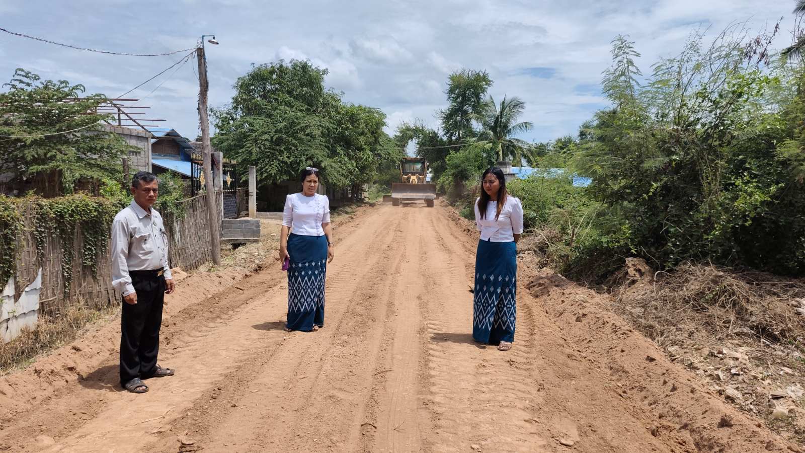 မန္တလေးတိုင်းဒေသကြီး(ငွေလုံးငွေရင်း) ခွင့်ပြုရန်ပုံ ငွေကျပ် ၈၇ ဒသမ ၂၃ ကျပ်သန်းဖြင့် လမ်းအရှည်တစ်မိုင်(၆)ဖာလုံ၊ ဒုရှစ်လက်မနှင့်အကျယ်(၁၆)ပေ ကျောက်ရောမြေခင်းပေးခြင်းလုပ်ငန်းများကို ခရိုင်ကျေးလက်လမ်းဖွံ့ဖြိုးရေးဦးစီးဌာနမှ လက်ထောက်ညွှန်ကြားရေးမှူးနှင့်တာဝန်ရှိသူများက ကွင်းဆင်းစစ်ဆေးသည်။