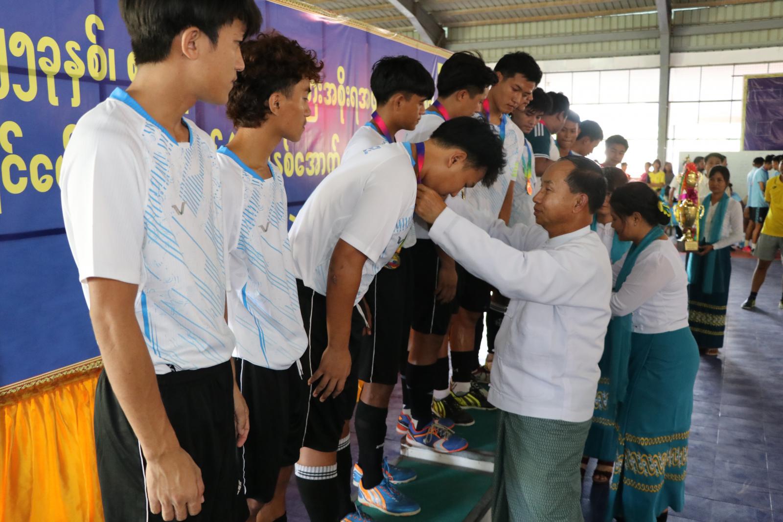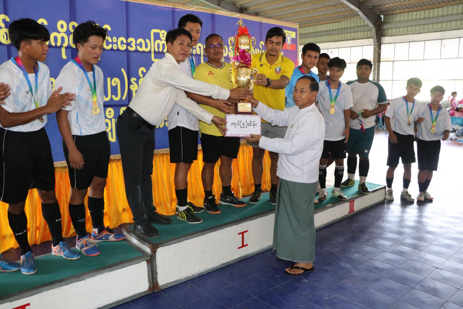 ထို့နောက် တိုင်းဒေသကြီး စီးပွားရေးရာဝန်ကြီး ဒေါ်ရီရီသန်း၊ တိုင်းဒေသကြီး လမ်းပန်းဆက်သွယ်ရေးရာဝန်ကြီး ဦးခင်မောင်အေးနှင့် တိုင်းဒေသကြီးဥပဒေချုပ် ဒေါ်လှလှဝင်းတို့က နေရာအလိုက်အကောင်းဆုံးဆုများနှင့် ပွဲစဉ်တစ်လျှောက်အကောင်းဆုံးဆုရ အားကစားသမားများအား ဂုဏ်ပြုချီးမြှင့်ငွေနှင့် ဆုတံဆိပ်များအား ပေးအပ်ချီးမြှင့်ကြပြီး တိုင်းဒေသကြီးအစိုးရအဖွဲ့ အတွင်းရေးမှူးက ပထမဆုရရှိခဲ့သည့် ကလေးခရိုင်အသင်းအား ဂုဏ်ပြုချီးမြှင့် ငွေကျပ် ၅ သိန်းအား ပေးအပ်ချီးမြှင့်ကာ တာဝန်ရှိသူများနှင့်အတူ စုပေါင်းမှတ်တမ်းတင် ဓါတ်ပုံရိုက်ကူးခဲ့ကြောင်း သိရသည်။