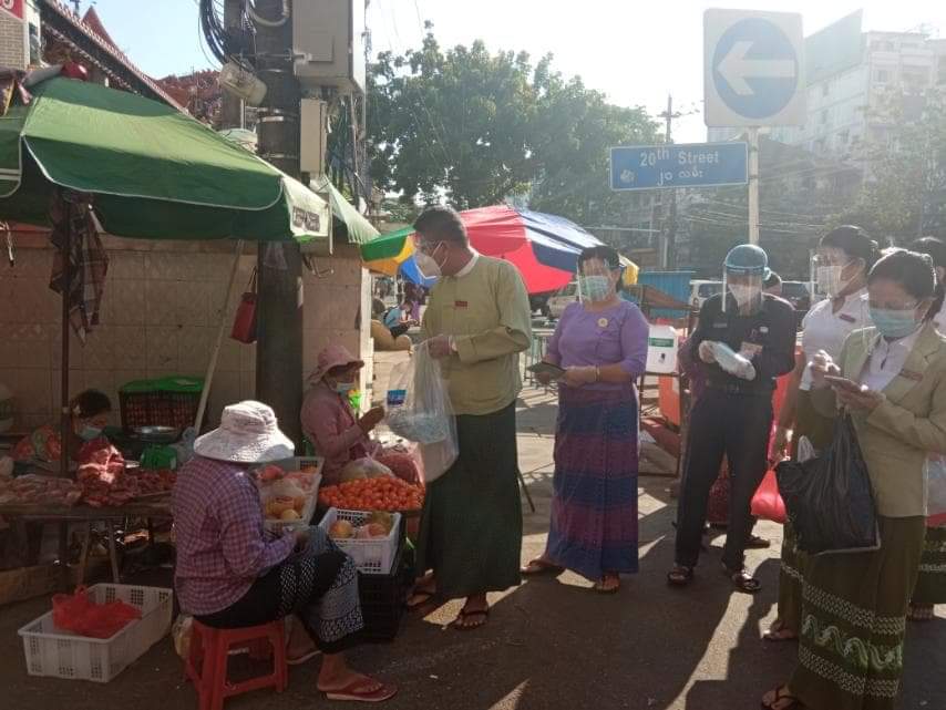 ထိုသို့ဆောင်ရွက်ရာတွင် လသာမြို့နယ်၏ လူစည်ကားရာ နေရာများ ဖြစ်သည့် မဟာဗန္ဓုလလမ်း၊ ၁၉လမ်း၊ လမ်း ၂၀ရှိ ဈေးသည်များနှင့် လမ်းသွားလမ်းလာ ပြည်သူများအား ကိုဗစ်-၁၉ ရောဂါ ကူးစက်ခံရမှုမှ ကာကွယ်နိုင်ရေး အတွက် နေအိမ်ပြင်ပထွက်ခွာတိုင်းတွင် ပါးစပ်၊ နှာခေါင်းစည်း (Mask) တပ်ဆင်လာစေရေးအတွက် ဆောင်ရွက် ပေးခဲ့ကြပြီး ကိုဗစ်-၁၉ ရောဂါကာကွယ်ရေးဆိုင်ရာ နည်းလမ်းများကို အသိပညာပေးခြင်းတို့ကို ဆောင်ရွက် ပေးခဲ့ကြပါသည်။