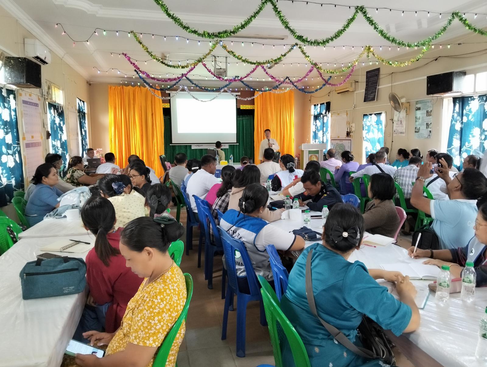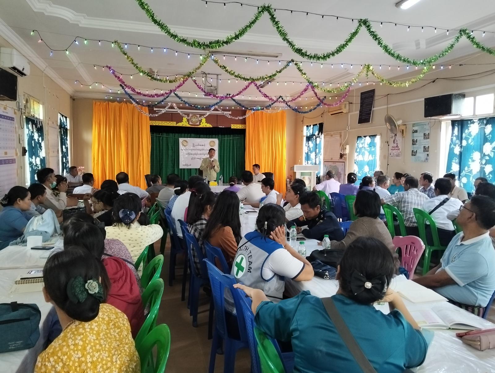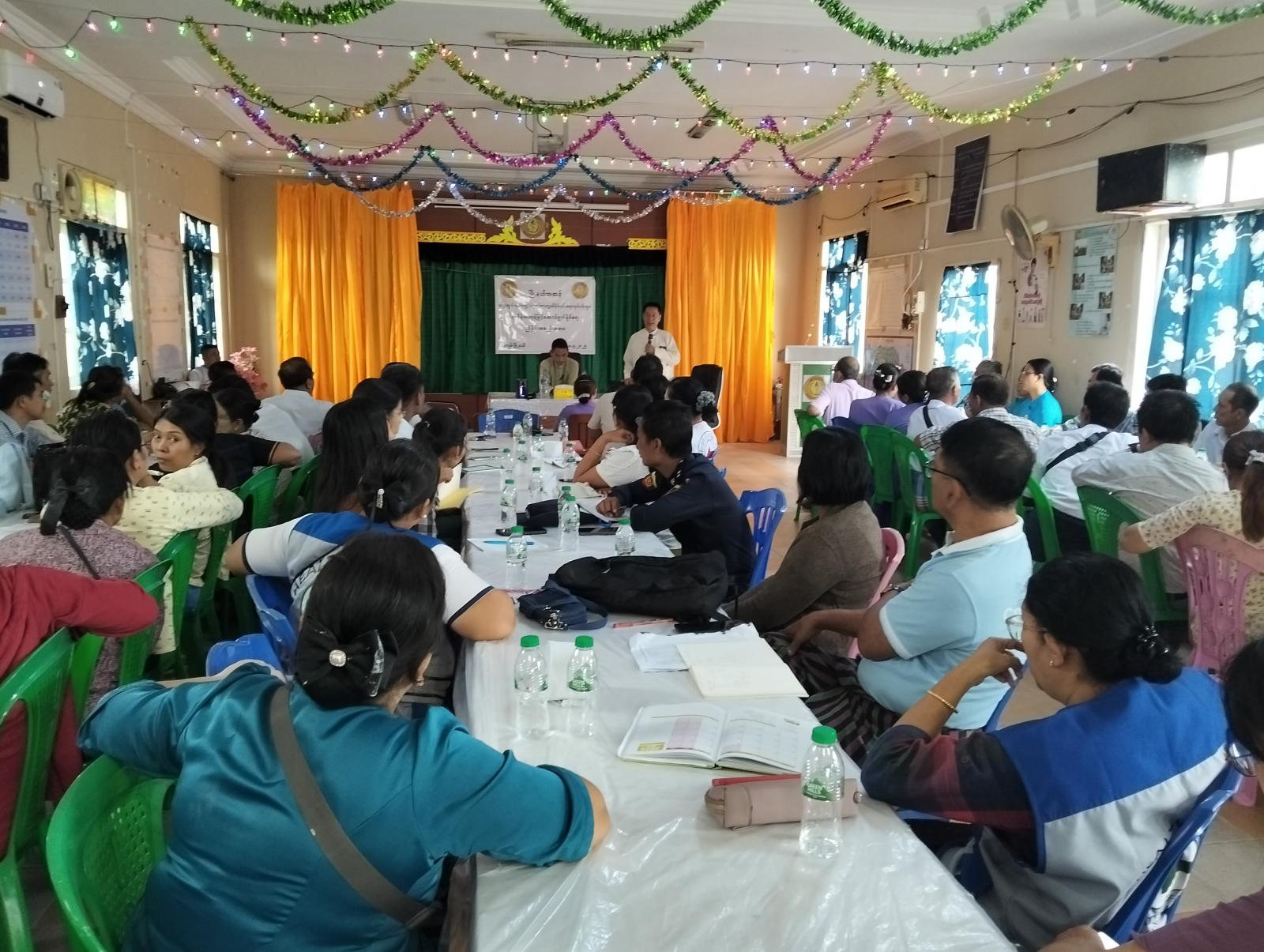 အစည်းအဝေးသို့ မြို့နယ်စီမံအုပ်ချုပ်ရေးအဖွဲ့ဥက္ကဋ္ဌနှင့်အဖွဲ့ဝင်များ၊ ဌာနဆိုင်ရာများ၊ မြို့နယ်မိခင်နှင့်ကလေးစောင့်ရှောက်ရေးအသင်းဥက္ကဋ္ဌနှင့်အဖွဲ့ဝင်များ၊ လူမှု ရေးအသင်းအဖွဲ့များ၊ ရပ်ကွက်အုပ်ချုပ်ရေးမှူးများ၊ ကျန်းမာရေးဦးစီးဌာနမှဝန်ထမ်းများတက်ရောက်ခဲ့ကြောင်း သိရှိရသည်။
