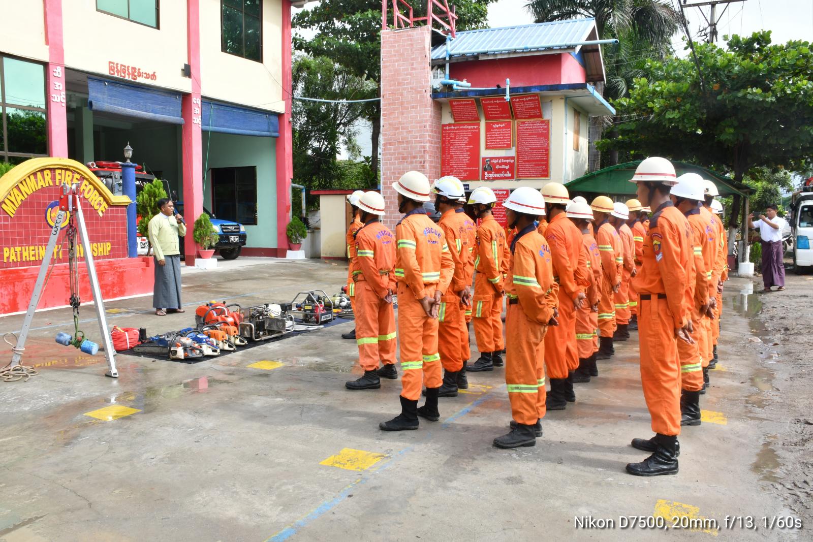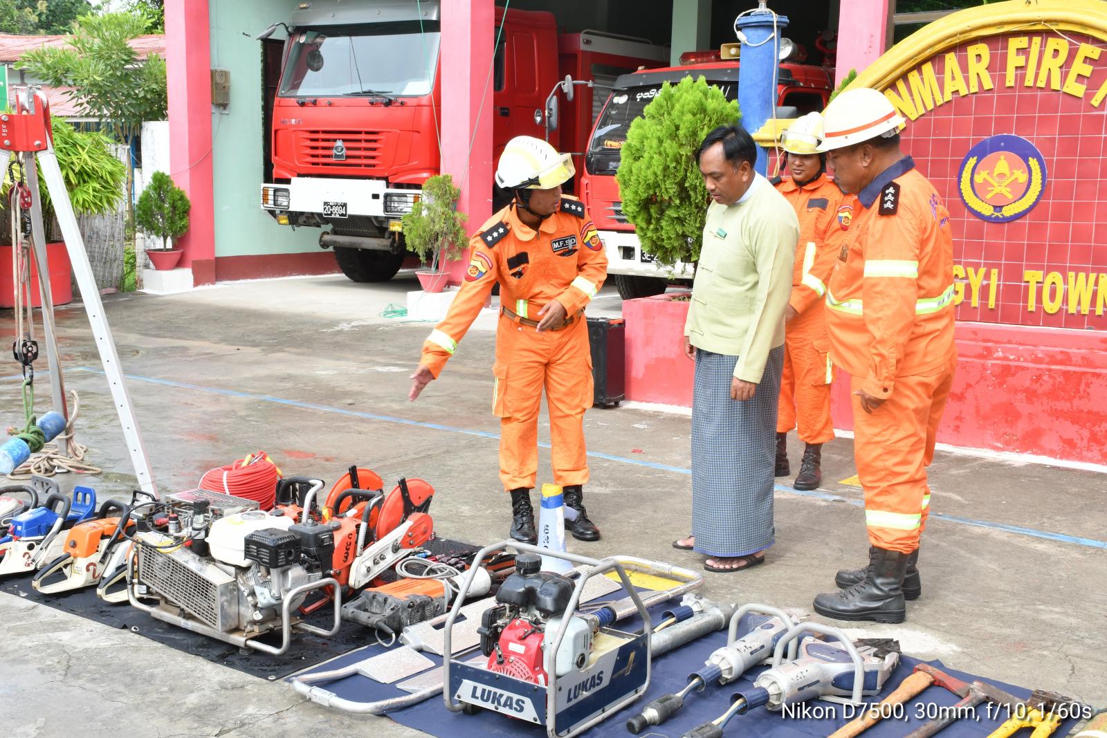 အဆိုပါ အသင့်စုဖွဲ့ထားရှိရာသို့ မြို့နယ်စီမံအုပ်ချုပ်ရေးအဖွဲ့ဥက္ကဋ္ဌ ဦးနေလင်းထွန်းက အမှာစကားပြောကြားပြီး၊ သဘာဝဘေးအန္တရာယ်များ ကျရောက်လာပါက အချိန်နှင့်တပြေးညီ ရှာဖွေကယ်ဆယ်ရေးလုပ်ငန်းများ၊ ကူညီဆောင်ရွက်နိုင်ရန် မြို့နယ်မီးသတ်ဦးစီးဌာနရှိ သန္ဓေတပ်ဖွဲ့ဝင်များ၊ အရန်မီးသတ်တပ်ဖွဲ့ဝင်များ၊ မော်တော်ယာဥ်များ၊ Hydraulic Rescue Tools ၊ အခြားစက်ပစ္စည်း ကိရိယာများဖြင့် အသင့်ပြင်ဆင်စုဖွဲ့ကာ ဆောင်ရွက်ထားရှိသည်များအား ကြည့်ရှုခဲ့သည်။