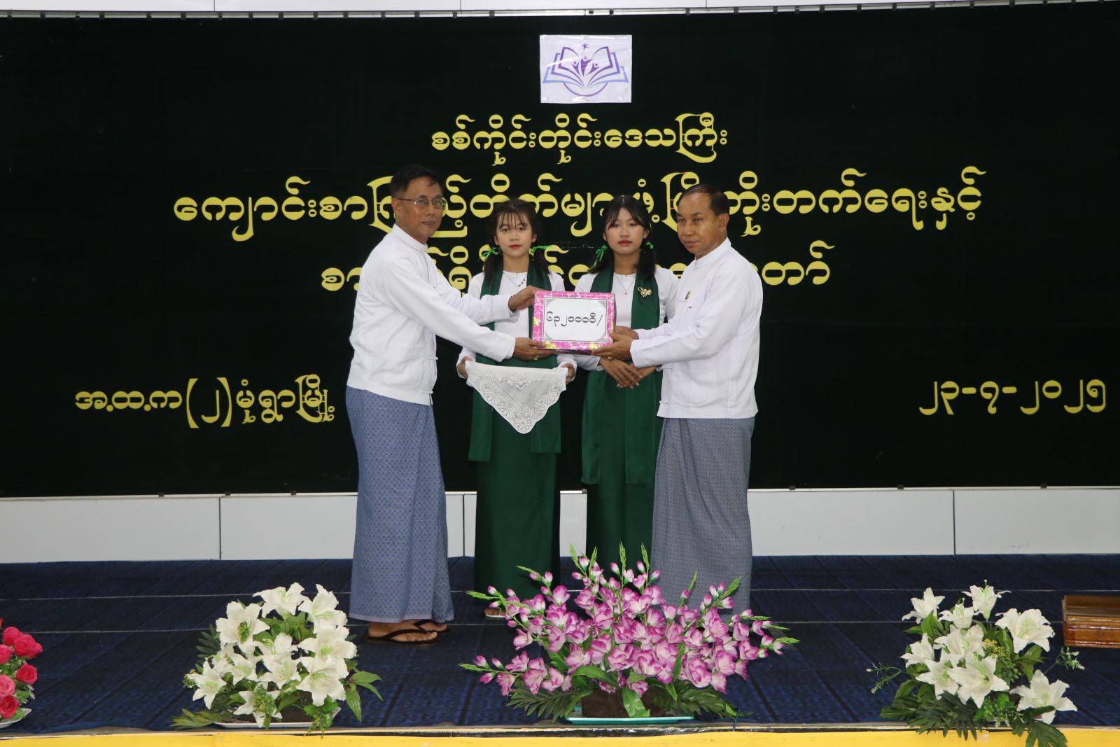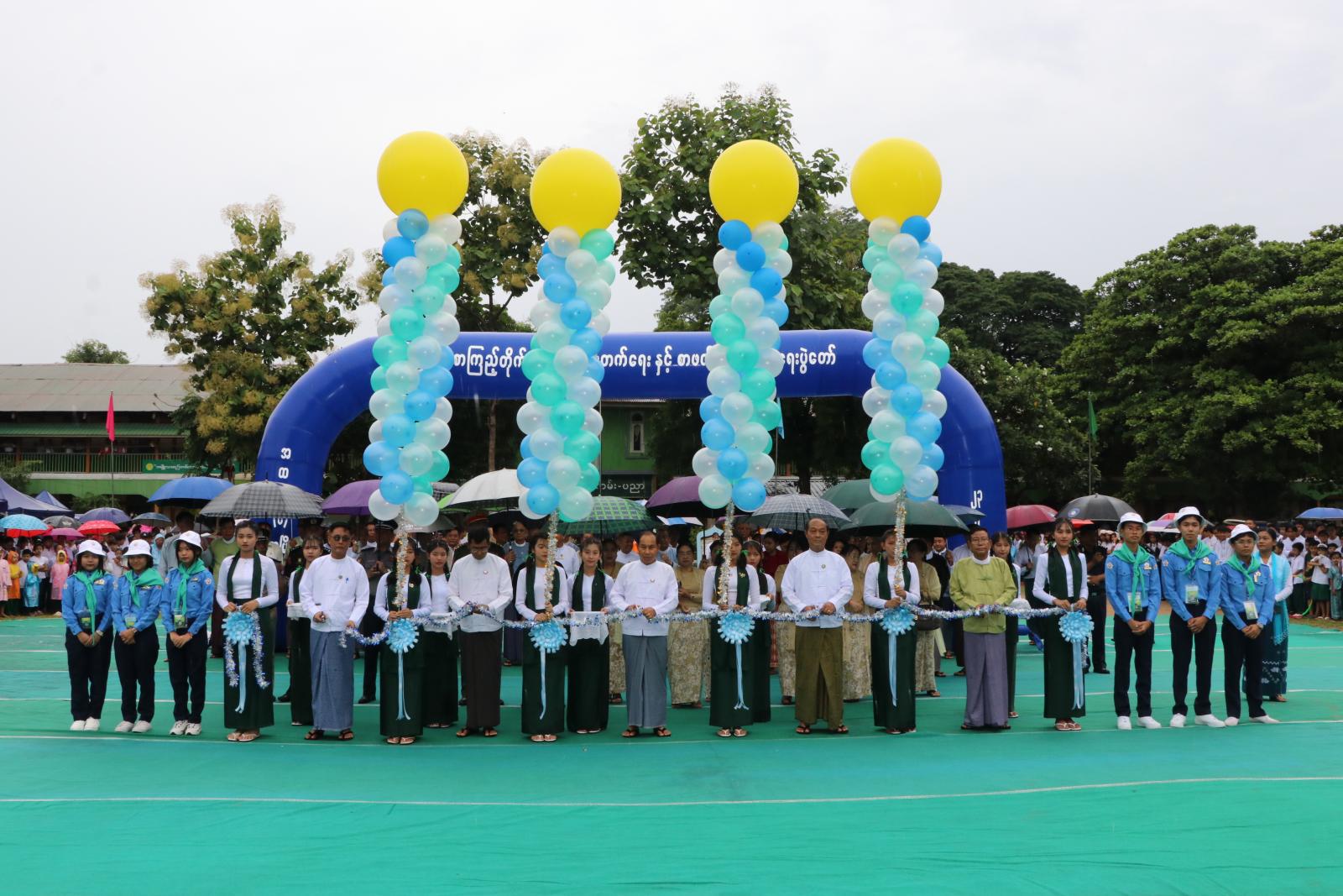 ဦးစွာ မုံရွာမြို့၊ အမှတ်(၂)အခြေခံပညာအထက်တန်းကျောင်းမှ ကျောင်းသား/သူများက “အလှပန်းများပွင့်ကြပြီ” တေးသီချင်းသီဆို၍ အခမ်းအနားအား ဖွင့်လှစ်ကြသည်။