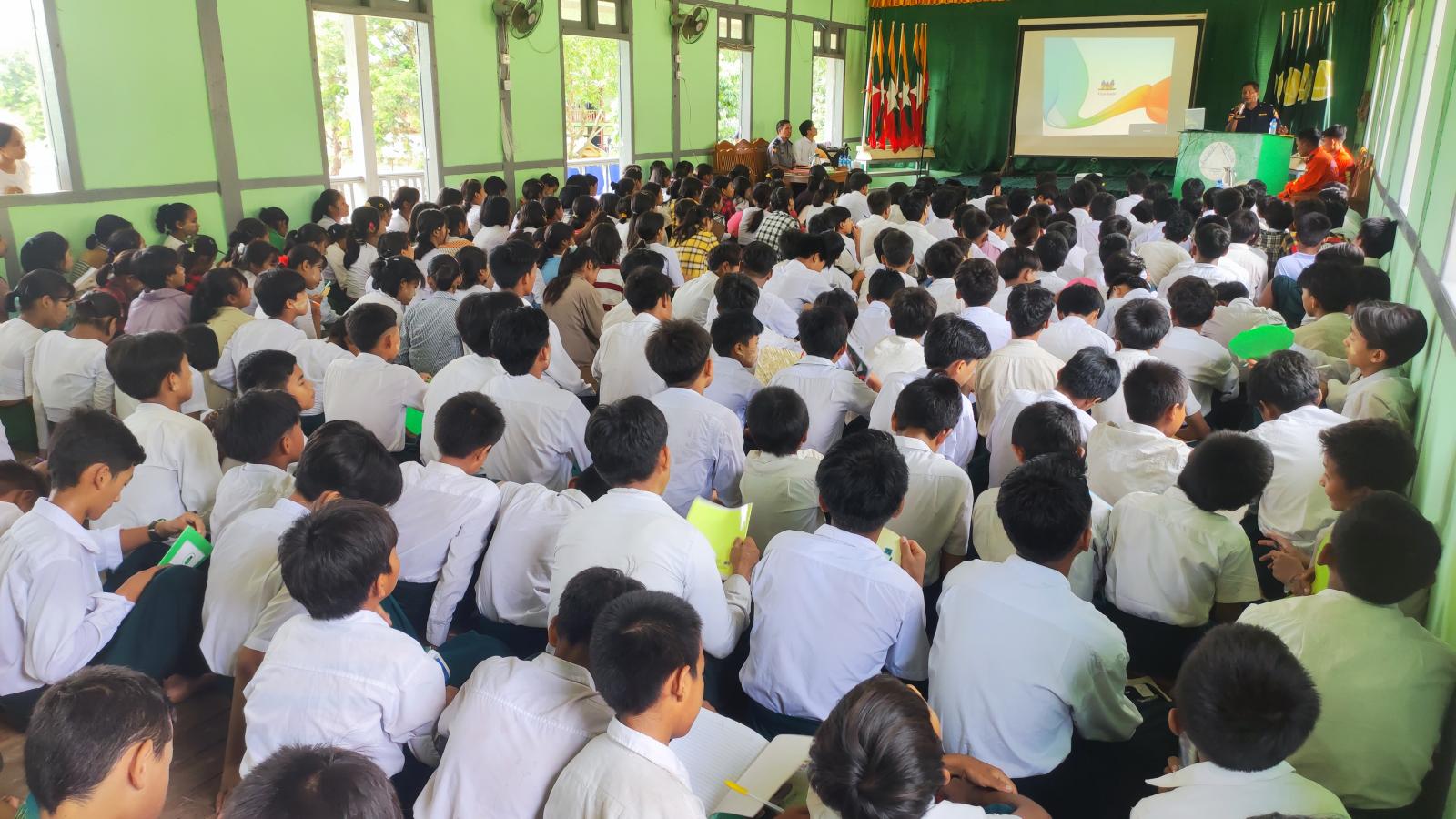 ဆက်လက်၍ ခန္တီးခရိုင်မီးသတ်ဦးစီးဌာန၊ ဒုတိယမီးသတ်ဦးစီးမှူး ဦးအောင်ကိုလင်းက ငလျင်ဘေးအန္တရာယ်မဖြစ်ပေါ်ခင် ကြိုသင့်ဆောင်ရွက်ထားသင့်သည်များ၊ ကျရောက်လာပါက ဆောင်ရွက်ရမည့်အချက်များ၊ ဘေးအန္တရာယ်ကျရောက်ပြီးနောက် ဆောင်ရွက်ရမည့်အချက်များနှင့်ပတ်သက်၍ အကျယ်တဝင့်ရှင်းလင်းပြောကြားရာ တက်ရောက်လာကြသည့် ကျောင်းဆရာ/မ၊ ကျောင်းသား/သူ(၃၀၀)ဦးက စိတ်ဝင်တစားနားထောင်ခဲ့ကြသည်။