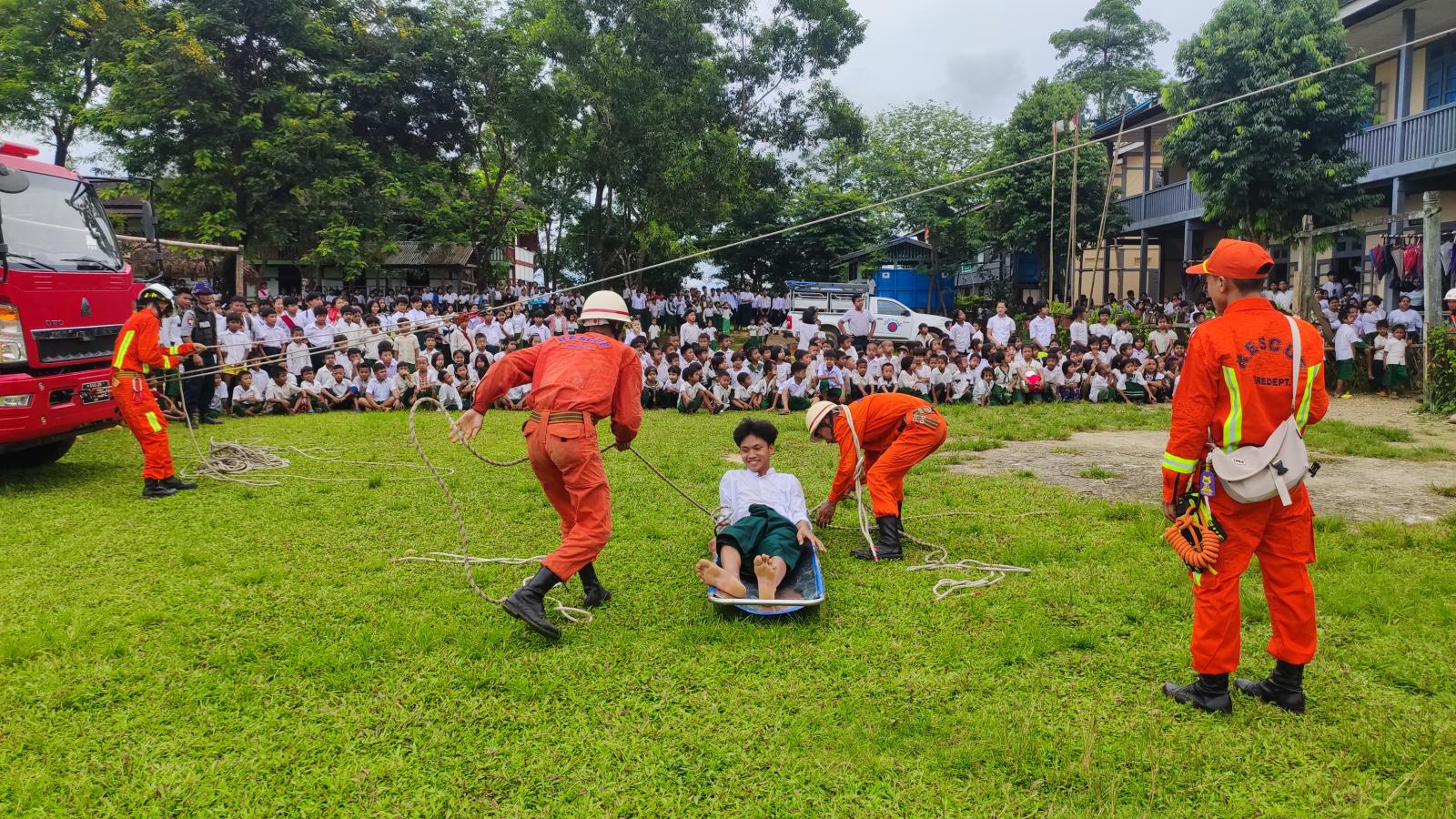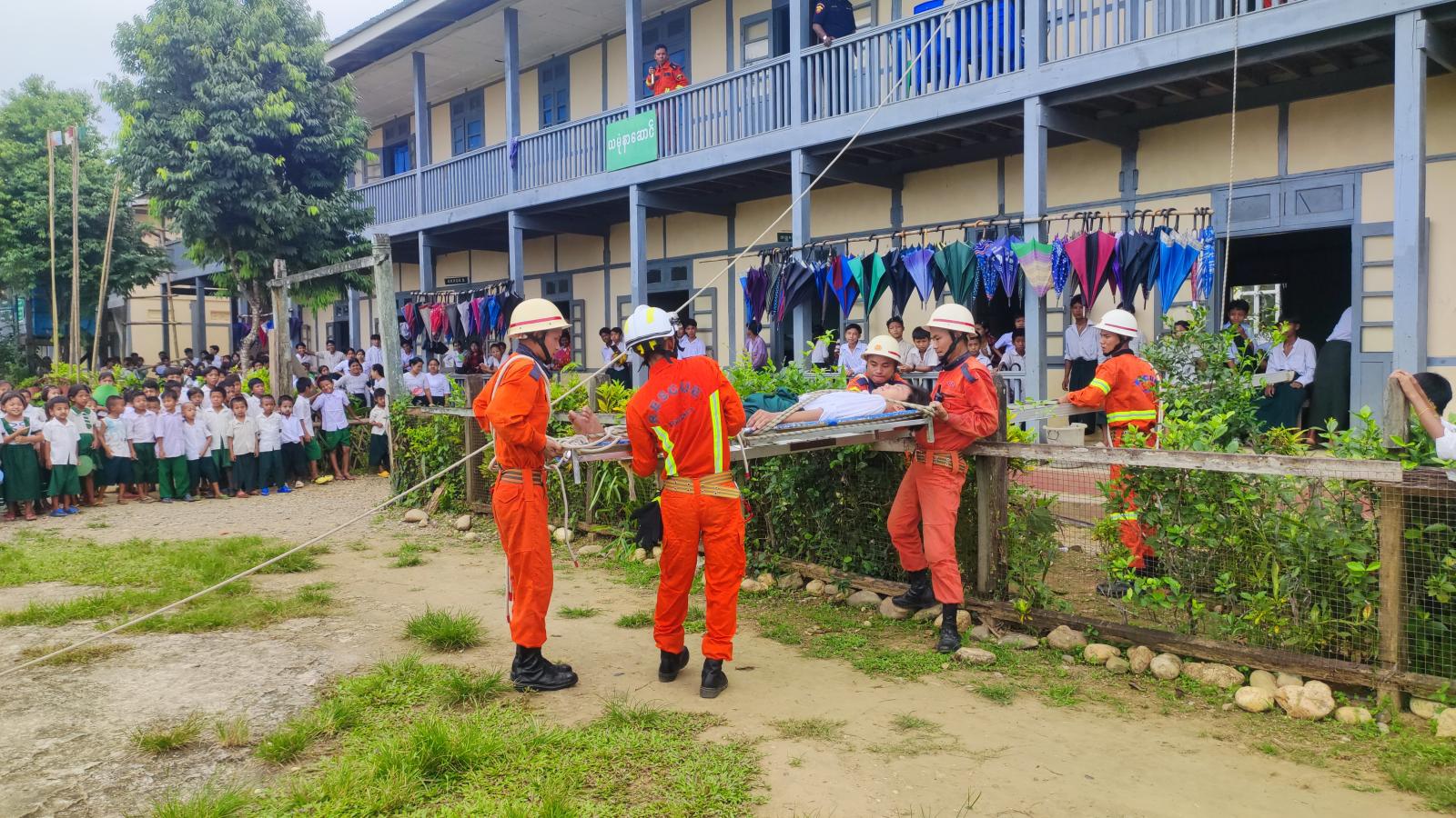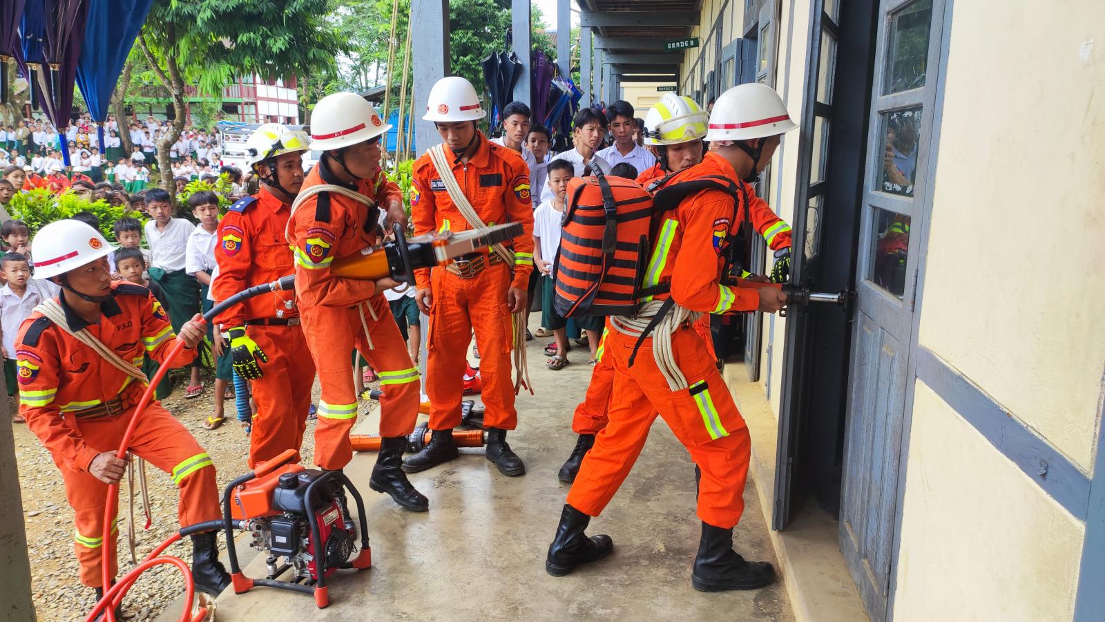 ထို့နောက် မီးသတ်ဦးစီးဌာနမှ ဝန်ထမ်းများက ငလျင်ဘေးအန္တရာယ် ကြုံတွေ့လာပါက ရှာဖွယ်ကယ်ဆည်ရေးလုပ်ငန်းဆောင်ရွက်မှုများအား လက်တွေ့သရုပ်ပြသခဲ့ရာ ကျောင်းသား/သူလေးများလည်း ပါဝင်ဆောင်ရွက်ခဲ့ကြကြောင်း သိရသည်။