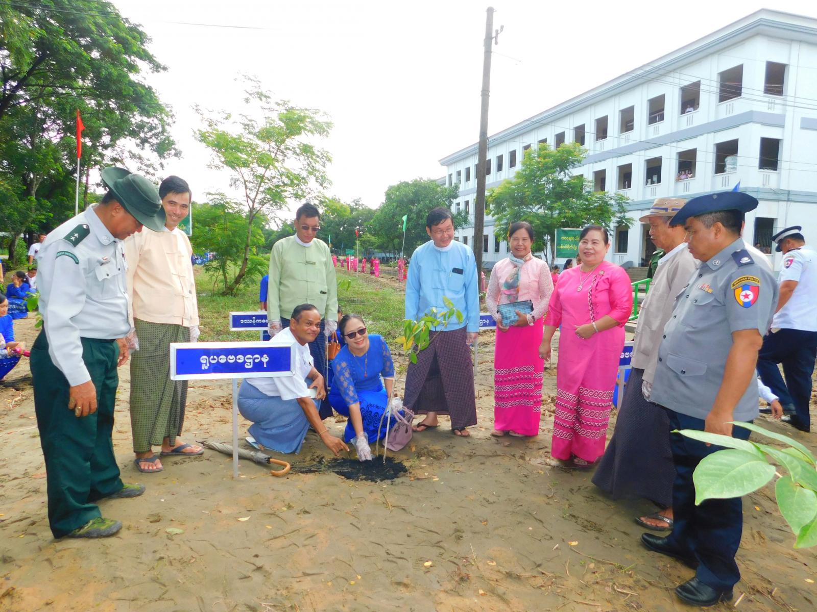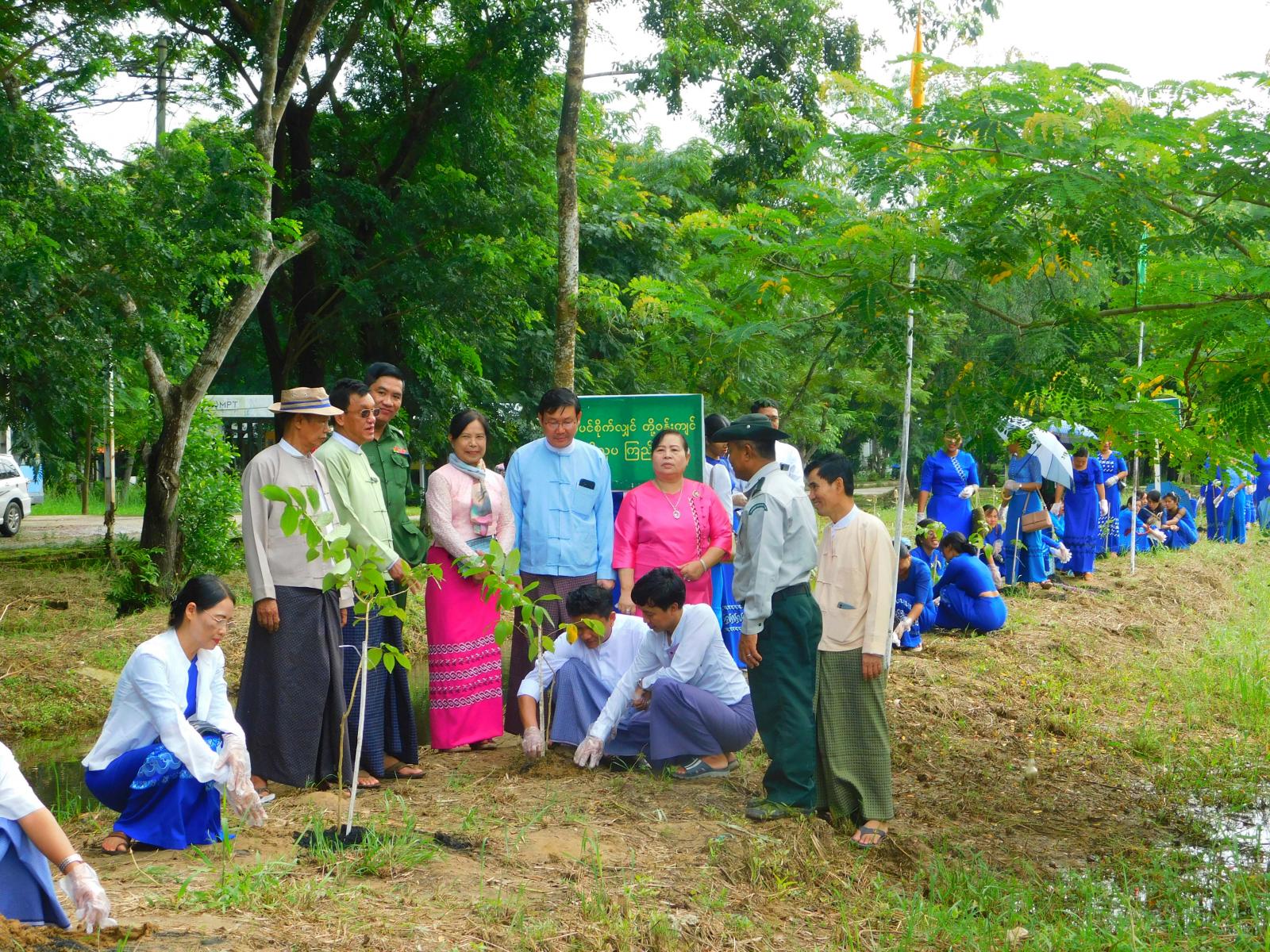 ထို့နောက် ရန်ကုန်အနောက်ပိုင်းတက္ကသိုလ်ပါမောက္ခချုပ် ဒေါက်တာသန်းဇော်ဦး၊ ဒုတိယပါမောက္ခချုပ်များ၊ မြို့နယ်စီမံအုပ်ချုပ်ရေးအဖွဲ့ဥက္ကဋ္ဌနှင့် မြို့နယ်စီမံအုပ်ချုပ်ရေးအဖွဲ့ဝင်များ၊ မြို့နယ်သစ်တောဦးစီးဌာနမှဝန်ထမ်းများ၊ မြို့နယ်ဌာနဆိုင်ရာတာဝန်ရှိသူများ၊ ဆရာ၊ ဆရာမများနှင့်ဝန်ထမ်း(၅၀၀)ကျော်တို့က ပျဥ်းမ(၁၇၅)ပင်၊မဟော်ဂနီ(၆၅)ပင်၊ ထိုင်ဝမ်ဘန်ဒါ(၁၆)ပင်၊ခရေ (၁)ပင်၊ ကံ့ကော်(၁)ပင်နှင့် မယ်ဇယ်(၁)ပင် စုစုပေါင်းပျိုးပင်(၂၅၉)ပင်တို့ကို စုပေါင်းစိုက်ပျိုးခဲ့ကြကြောင်းလည်း သိရသည်။