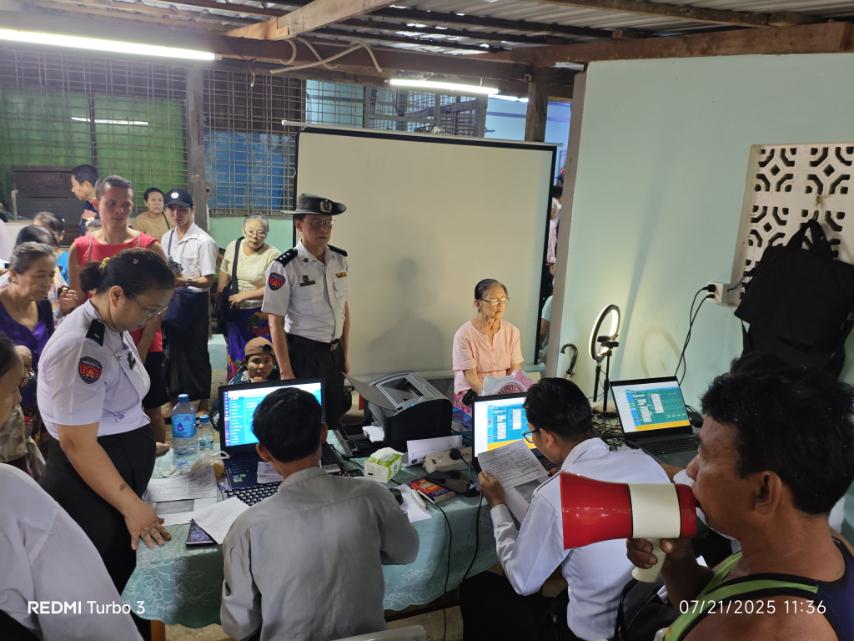 ရန်ကုန်တိုင်းဒေသကြီး၊ မရမ်းကုန်းခရိုင်၊ လှိုင်မြို့နယ်တွင် လူဝင်မှုကြီးကြပ်ရေးနှင့်ပြည်သူ့အင်အားဝန်ကြီးဌာန မြို့နယ်ဦးစီးမှူးရုံးမှနိုင်ငံ့ဝန်ထမ်းအငြိမ်းစားများ ပင်စင်လစာများထုတ်ယူရာတွင်အဆင်ပြေစေရန် (UID) Unique Identity ကတ်များဆောင်ရွက်ပေးခြင်းကို ဇူလိုင်လ ၂၂ ရက်နေ့နံနက်(၉)နာရီအချိန်က မြန်မာ့စီးပွားရေးဘဏ်(ခွဲ)၌ ပြုလုပ်ပေးလျက်ရှိကြောင်း သိရသည်။