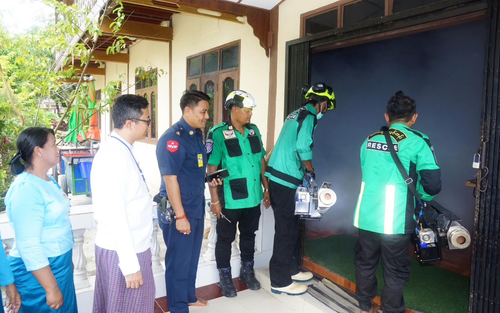 ထိုသို့ဆောင်ရွက်ရာတွင် မြို့နယ်စီမံအုပ်ချုပ်ရေးအဖွဲ့၀င်(၁)ဗိုလ်မှူး ဖြိုးဝေလင်း၊ မြို့နယ်ပြည်သူ့ကျန်းမာရေးဦးစီးဌာနမှူး ဒေါက်တာမျိုးမင်းထွန်းဦးဆောင်၍ ကျန်းမာရေး၀န်ထမ်းများ၊ သူနာပြုသင်တန်းကျောင်းမှ သင်တန်းသား၊ သင်တန်းသူများ၊ မြို့နယ်အမျိုးသမီးရေးရာအဖွဲ့၊ မိခင်နှင့်ကလေးစောင့်ရှောက်ရေးအသင်း၊ ရပ်ကွက်အုပ်ချုပ်ရေးမှူးများ၊ လူမှုကူညီရေးအသင်းအဖွဲ့များ၊ စေတနာ့၀န်ထမ်းများပူးပေါင်း၍ (ဃ)ရပ်ကွက်အတွင်းရှိ ဘုန်းတော်ကြီးကျောင်းများ၊ စာသင်ကျောင်းများ၊ နေအိမ်များအတွင်းရှိ နေအိမ်များသို့သွားရောက်ကာ ခြင်မှတစ်ဆင့် ဖြစ်ပွားတတ်သော သွေးလွန်တုပ်ကွေးရောဂါ ကြိုတင်ကာကွယ်နိုင်ရေး အသိပညာပေးဟောပြောခြင်း၊ ရပ်ကွက်အတွင်း အသိပညာပေးဗီနိုင်းများကပ်ခြင်း၊ ဖုံး၊ သွန်၊ လဲ၊ စစ် ပြုလုပ်ခြင်း၊ ဘုရားပန်းအိုး၊ ရေစည်၊ ရေအိုးများတွင် ပိုးလောက်လမ်း ရှိ၊ မရှိ စစ်ဆေးခြင်း၊ ရေတွင်း၊ ရေကန်များတွင် အဘိတ်ဆေးခတ်ခြင်း၊ ခြင်ဆေးမှုတ်ခြင်းလုပ်ငန်းများအား အရှိန်အဟုန်မြှင့် ကွင်းဆင်းဆောင်ရွက်ခဲ့ကြကြောင်း သိရသည်။