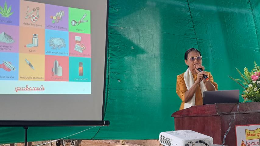 ထို့နောက် မြန်မာနိုင်ငံမူးယစ်ဆေးဝါးဆန့်ကျင်ရေးအသင်း(ဗဟို)မှ အလုပ်အမှုဆောင် ဒေါက်တာဆွေဆွေအောင်က မူးယစ်ဆေးဝါးအကြောင်းကိုလည်းကောင်း၊ ဗဟိုအလုပ်မှုဆောင် ဒေါ်အေးအေးအောင်က ဆေးလိပ်နှင့် E-စီးကရက်အကြောင်းကိုလည်းကောင်း၊ မြို့နယ်မူးယစ်ဆေးဝါးဆန့်ကျင်ရေးအသင်းမှ ဆရာဦးအောင်သီဟထွန်းက ဘဝအတွက်တာ Life Skill အကြောင်းကိုလည်းကောင်း အသီးသီးဟောပြောခဲ့ကြပြီး ကျောင်းသား၊ ကျောင်းသူများက သိလိုသည်များမေးမြန်းဆွေးနွေးရာ ပြန်လည်ရှင်းလင်းဖြေကြားပြီးနောက် ရန်ကုန်တိုင်းဒေသကြီး ကြက်ခြေနီကော်မတီမှ ကော်မတီဝင် ဆရာဦးနေဆန်းက ကျေးဇူးတင်စကားပြောကြားခဲ့သည်။