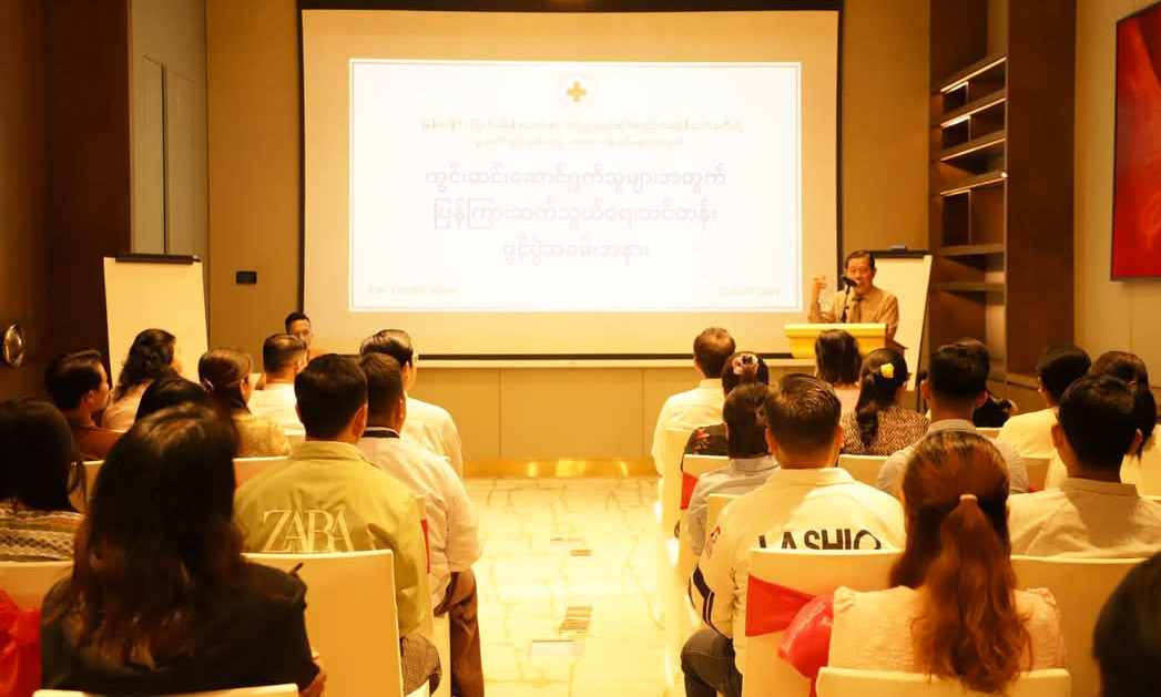 မြန်မာနိုင်ငံကြက်ခြေနီအသင်း၊ ရန်ကုန်တိုင်းဒေသကြီး ကြက်ခြေနီကြီးကြပ်မှုကော်မတီနှင့် အပြည်ပြည်ဆိုင်ရာ ကြက်ခြေနီကော်မတီတို့ ပူးပေါင်းဖွင့်လှစ်သော ကွင်းဆင်းဆောင်ရွက်သူများအတွက် ပြန်ကြားဆက်သွယ်ရေးသင်တန်းဖွင့်ပွဲကို ဇူလိုင်လ(၂၂)ရက်နေ့က ရန်ကုန်မြို့ရှိ Pan Pacific Hotel တွင်ပြုလုပ်ခဲ့ရာ အသင်းဥက္ကဋ္ဌ ပါမောက္ခဒေါက်တာမျိုးညွန့် တက်ရောက်အမှာစကားပြောကြားခဲ့သည်။