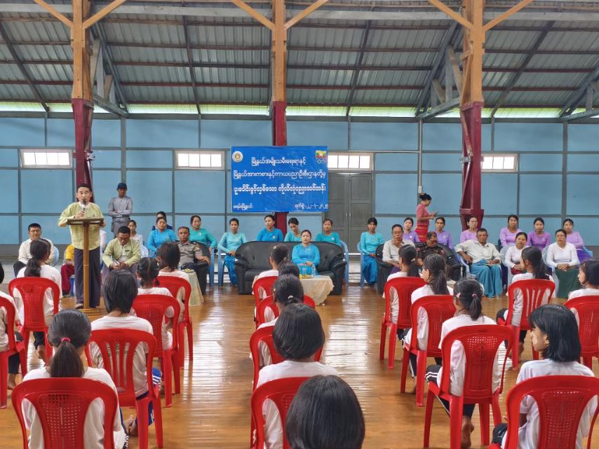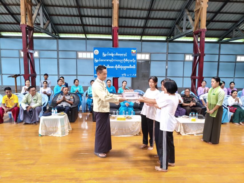အခမ်းအနားတွင် မြို့နယ်စီမံအုပ်ချုပ်ရေးအဖွဲ့ဥက္ကဋ္ဌ ဦးအောင်ရဲက အဖွင့်အမှာစကားပြောကြားရာတွင် အမျိုးသမီးငယ်များအကြမ်းဖက်ခံရခြင်း၊ အနိုင်ကျင့်ခံရခြင်းမှကင်းဝေးပြီး မိမိကိုယ်ကိုကာကွယ်ခုခံနိုင်ရန်နှင့် အမျိုးသမီးကဏ္ဍဖွံ့ဖြိုးတိုးတက်စေရန်ရည်ရွယ်ပြီး ယခုလိုကိုယ်လုံပညာသင်တန်းအား ဖွင့်လှစ်ပေးရခြင်းဖြစ်ကြောင်းပြောကြားပြီး သင်တန်းသူများအားဝတ်စုံများထောက်ပံ့ပေးအပ်ခဲ့သည်။ ထို့နောက်မြို့နယ်အမျိုးသမီးရေးရာအဖွဲ့ဥက္ကဋ္ဌ ဒေါက်တာဒေါ်ခင်ထက်ထက်က သင်တန်းနည်းပြအား လက်ဆောင်ပစ္စည်းပေးအပ်ခဲ့ပြီး သင်တန်းသူများအား အချိုရည်များတိုက်ကျွေးခဲ့သည်။