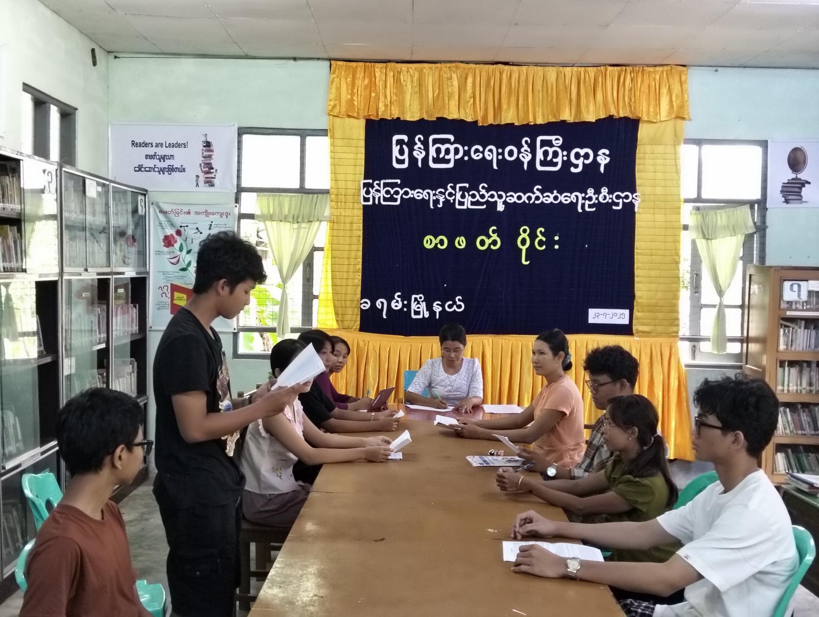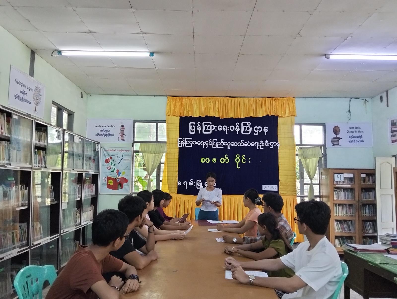 အဆိုပါစာဖတ်ဝိုင်းတွင် မြို့နယ်ပြန်ကြားရေးနှင့်ပြည်သူ့ဆက်ဆံရေးဦးစီးဌာန၊ ဦးစီးအရာရှိ ဒေါ်ခင်နှင်းဝေက စာဖတ်ဝိုင်းပြုလုပ်ရခြင်း၏ ရည်ရွယ်ချက်များကို ရှင်းလင်းဆွေးနွေးပြီး၊ Book Club အဖွဲ့ဝင် မောင်အောင်ခန့်လင်းက စာရေးဆရာအောင်သင်း၏ “လူငယ်များသို့မင်္ဂလာပါ” စာအုပ်တွင် လူငယ်များအနေဖြင့် ဘ၀အောင်မြင်ရေးရရှိစေရန် အရာရာကို အကျိုးအကြောင်းမှန်သမျှ တွေးခေါ်စဉ်းစားဆုံးဖြတ်သင့်ကြောင်း၊ လူအများနှင့်ပေါင်းသင်းဆက်ဆံရာတွင်လည်း လူမိုက်များကို ရှောင်ကြဉ်၍ ပညာရှိသူတော်ကောင်းများနှင့်သာ ပေါင်းသင်းဆက်ဆံသင့်ကြောင်း၊ လူကြီးမိဘ၊ ဆရာသမားများ၏ ဆုံးမဩ၀ါဒများကို နာခံလိုက်နာသင့်ကြောင်းတို့ကို ရေးသားထားသော စာအုပ်ဖြစ်ပါကြောင်း စာအုပ်ပါအကြောင်းအရာများကို အကျယ်တဝင့်ရှင်းလင်းဆွေးနွေးခဲ့ကြသည်။