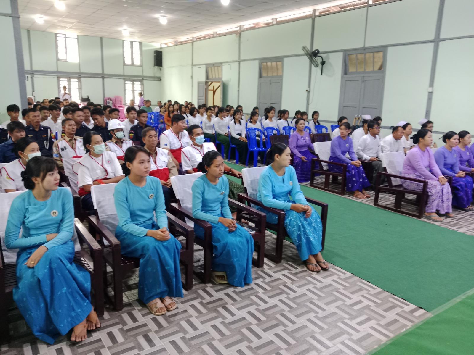 အဆိုပါအခမ်းအနားသို့ ခရိုင်မိခင်နှင့်ကလေးစောင့်ရှောက်ရေးအသင်းဝင်များ၊ မြို့နယ်မိခင်နှင့်ကလေးစောင့်ရှောက်ရေးအသင်း၊ မြို့နယ်အမျိုးသမီးရေးရာအဖွဲ့ဝင်များ၊ မြို့နယ်ကျန်းမာရေးဦးစီးဌာနမှ ဝန်ထမ်းများ၊ မြို့နယ်မီးသတ်တပ်ဖွဲ့၊ မြို့နယ်စည်ပင်သာယာရေးအဖွဲ့မှ ဝန်ထမ်းများ၊ ကျောင်းသား/ကျောင်းသူများ၊ ရပ်ကွက်အုပ်ချုပ်ရေးမှူးများနှင့် ပြည်သူများ၊ စုစုပေါင်းအင်အား (၁၈၀) ဦးခန့် တက်ရောက်ခဲ့ ကြသည်။