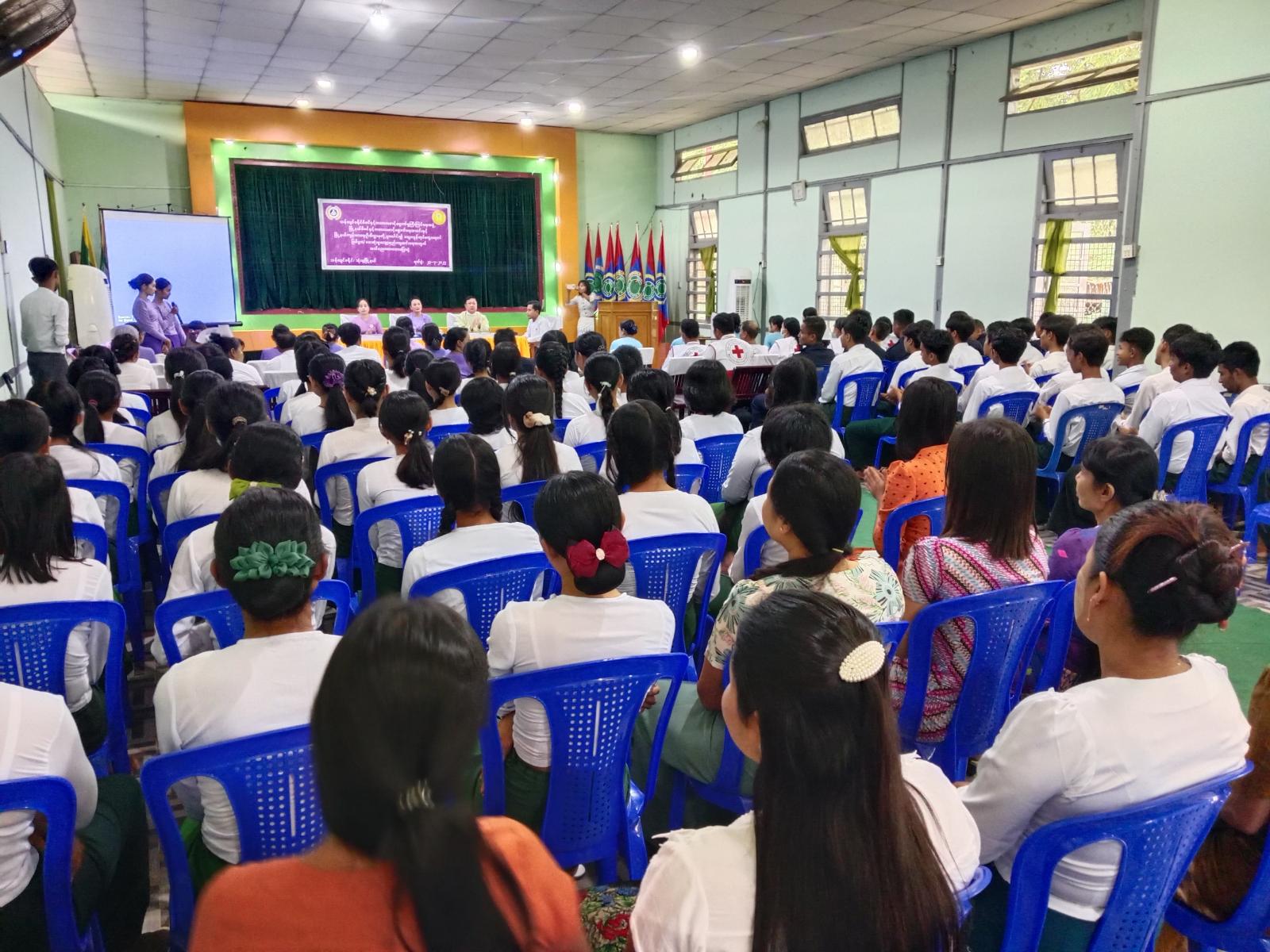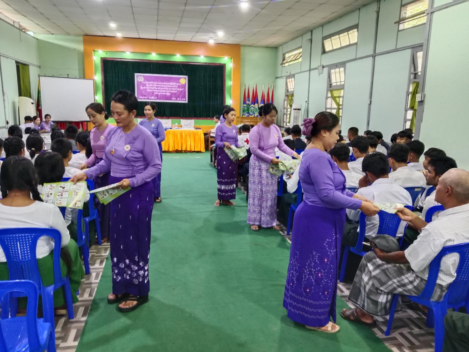 ဦးစွာ မြို့နယ်ကျန်းမာရေးဦးစီးဌာန တာဝန်ခံဆရာဝန် ဒေါက်တာ မင်းသူအောင် (ညောင်လန်းကုန်းတိုက်နယ်ဆေးရုံး) က သွေးလွန်တုပ်ကွေးရောဂါကာကွယ်နှိမ်နင်းရေး လုပ်ငန်းဆောင်ရွက်ပြီးစီးမှုအခြေအနေ၊ သွေးလွန်တုပ်ကွေးရောဂါ လက်ရှိဖြစ်ပွားနေမှုအခြေအနေ၊ သွေးလွန်တုပ်ကွေး ရောဂါကြိုတင်ကာကွယ်ရေးအကြောင်းအရာများကို ပရိုဂျတ်တာဖြင့် ရှင်းလင်းပြောကြားခဲ့သည်။ ထို့နောက် ခရိုင်မိခင်နှင့်ကလေးစောင့်ရှောက်မှုကြီးကြပ်ရေးအဖွဲ့ ဒုတိယဥက္ကဋ္ဌ ဒေါ်အေးသန္တာထွန်းက သွေးလွန်တုပ်ကွေးရောဂါမဖြစ်ပွားအောင် ကြိုတင်ကာကွယ်နိုင်ရေးနည်းလမ်းများအကြောင်းကို ပြောကြားခဲ့သည်။ ယင်းနောက် တက်ရောက်လာသူများအား သွေးလွန်တုပ်ကွေးရာဂါကြိုတင်ကာကွယ်နိုင်ရေး လက်ကမ်းစာစောင်များကို ဖြန့်ဝေခဲ့ကြသည်။