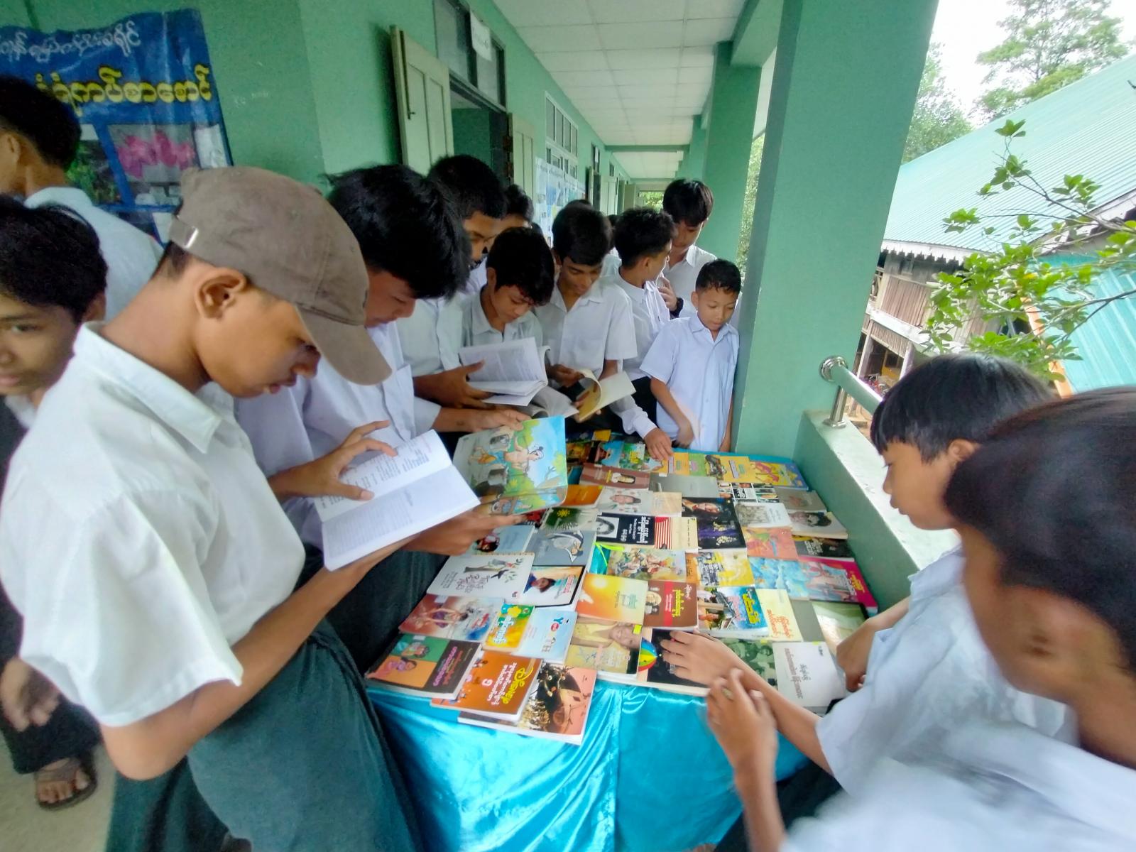 ထို့နောက် ကျောင်းသား၊ ကျောင်းသူများကို မြန်မာ့ရိုးရာချစ်စဖွယ်ပုံပြင်များစာအုပ်ကို ဖတ်ကြားစေပြီး ပြန်ကြားရေးနှင့်ပြည်သူ့ဆက်ဆံရေးဦးစီးဌာနမှ ခင်းကျင်းပြသထားသော ကလေးအလုပ်သမားပပျောက်ရေး ဝိုင်းဝန်းကူညီစောင့်ရှောက်ပေး နံရံကပ်စာစောင်၊ မူးယစ်ဆေးဝါးတိုက်ဖျက်ရေး အသိပညာပေးနံရံကပ်စာစောင်နှင့် အရွယ်မရောက်သေးသူ ကလေးသူငယ်များအား စစ်မှုထမ်းခြင်းမှ ကာကွယ်တားဆီးထိန်းသိမ်းရေး အသိပညာပေးနံရံကပ်စာစောင်များ၊ သုတ၊ ရသ စာအုပ်စာစောင်များပြသခဲ့ပြီး ဉာဏစွမ်းရည်ပြိုင်ပွဲများဖြစ်သည့် စာဖတ်စွမ်းရည်ပြိုင်ပွဲ စကားပုံဆက်ပြိုင်ပွဲကို ကျောင်းသား၊ ကျောင်းသူများက ပျော်ရွှင်စွာ ပါဝင်ကစားခဲ့ကြောင်း သိရသည်။