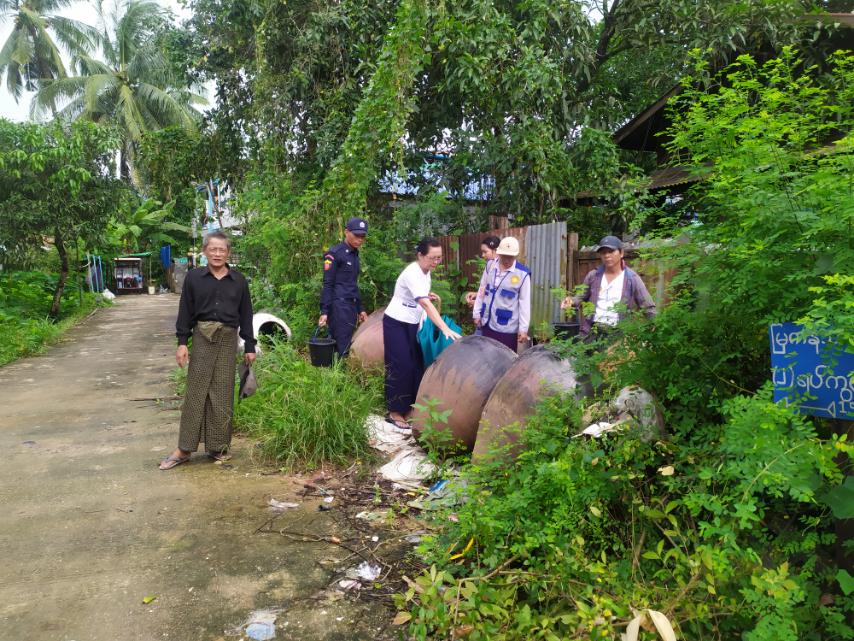 ထိုသို့ဆောင်ရွက်ရာတွင် ခြင်ကြောင့်ဖြစ်ပွားနိုင်သော သွေးလွန်တုပ်ကွေးရောဂါများကာကွယ်နိုင်ရေး၊ ပိုးလောက်လန်းပေါက်ပွားမှုမှ ကာကွယ်နိုင်ရေး၊ရေတင်ကျန်နိုင်သော ဘူးခွက်များ၊ ရေပုံး၊ ရေအိုးများ၊ ဘုရားပန်းအိုးများကို ဖုံး၊ သွန်၊ လဲ၊ စစ်လုပ်ငန်းများဆောင်ရွက်ပြီး ရေတိုင်ကီနှင့်ကျောက်စည်ပိုင်း၊ ရေအုတ်ကန်များအတွင်း အဘိတ်ဆေးခတ်ခြင်းနှင့် ကျန်းမာရေး ပညာပေးခြင်းလုပ်ငန်းများ ဆောင်ရွက်ပေးခဲ့သည်။