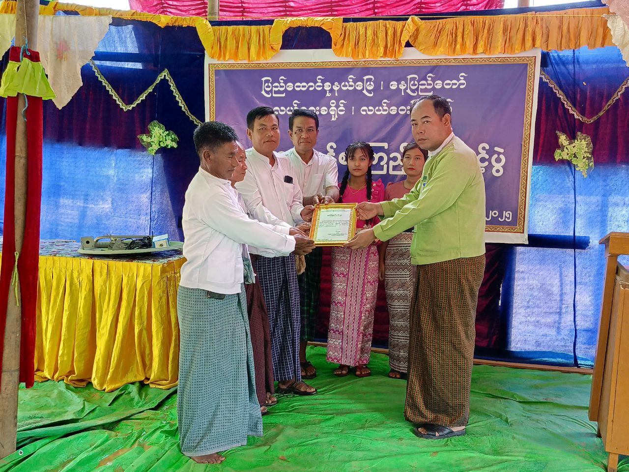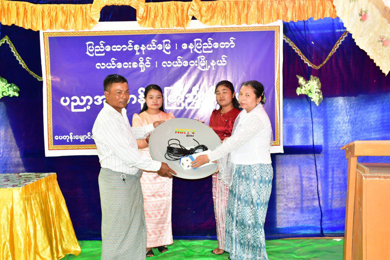ဆက်လက်၍ ပြည်ထောင်စုနယ်မြေ၊ ပြန်ကြားရေးနှင့်ပြည်သူ့ဆက်ဆံရေးဦးစီးဌာနမှ ညွှန်ကြားရေးမှူး ဒေါ်သင်းသင်းဇင်က အဖွင့်အမှာစကားပြောကြားပြီး စာကြည့်တိုက်ဆိုင်ရာ အချက်အလက်များကို မြို့နယ်စီမံအုပ်ချုပ်ရေးအဖွဲ့ဥက္ကဋ္ဌဦးကျော်သူရထံ လွှဲပြောင်းပေးအပ်သည်။ ထို့နောက် နေပြည်တော်ကောင်စီမှလှူဒါန်းသည့် အလှူငွေများနှင့်MRTV DTH စလောင်းနှင့် MRTV DVB T 2 Set Top Box တစ်စုံတို့ကိုလှူဒါန်းရာတို့ကို လှူဒါန်းရာ ကျေးရွာအုပ်ချုပ်ရေးမှူးနှင့် ရပ်မိရပ်ဖများက လက်ခံရယူသည်။ ဆက်လက်၍ လယ်ဝေးခရိုင် အုပ်ချုပ်ရေးမှူးဦးဇင်မင်းကိုက အလှူငွေကျပ် ၇၅ သိန်းလှူဒါန်းသည့် ကျေးရွာပြည်သူများ အား ဂုဏ်ပြုမှတ်တမ်းလွှာပေးအပ်သည်။