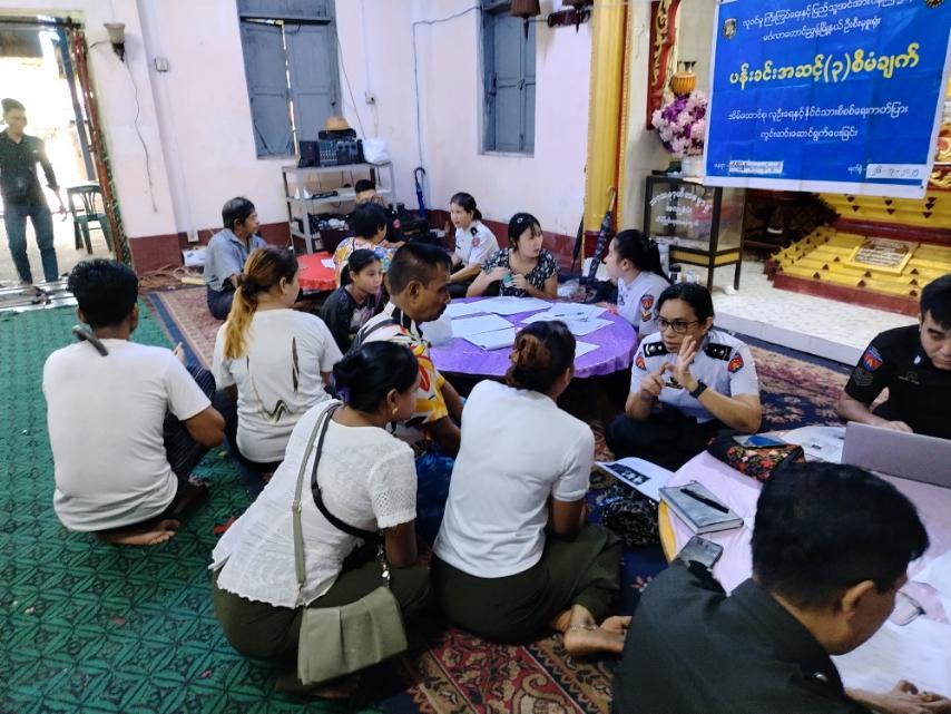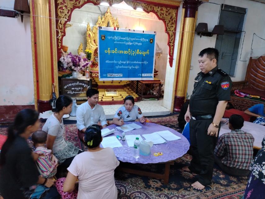 ထို့နောက် မြို့နယ်လဝကမှူး ဦးလင်းထိန်ဦးဆောင်၍ ဝန်ထမ်းများသည် သိမ်ဖြူမီးရထားရပ်ကွက်၊ သာသနာ့ဟိတဓမ္မာရုံတွင် ရပ်ကွက်အတွင်းရှိ ပြည်သူများအား အိမ်ထောင်စုစာရင်းစိစစ်ဆောင်ရွက်ခြင်းနှင့် နိုင်ငံသားစိစစ်ရေးကတ်ပြားများကို ကွင်းဆင်းဆောင်ရွက်ပေးခဲ့ကြပါသည်။