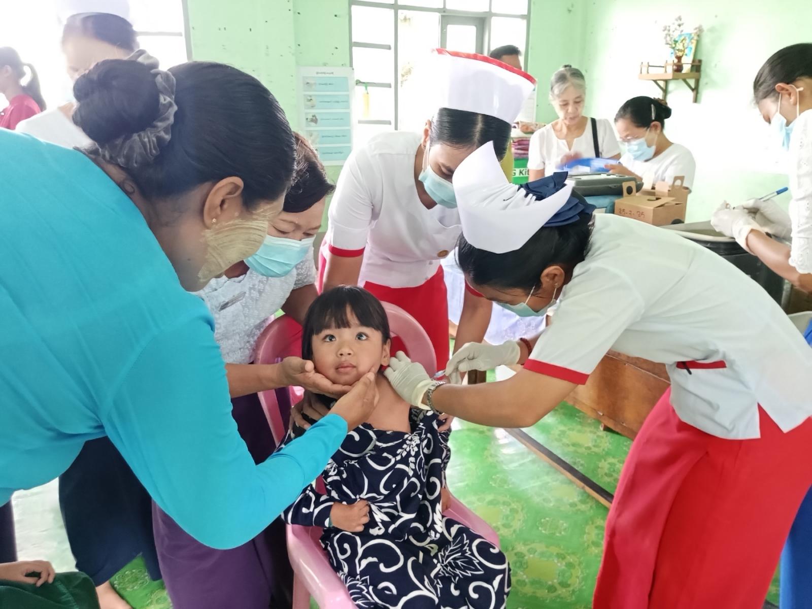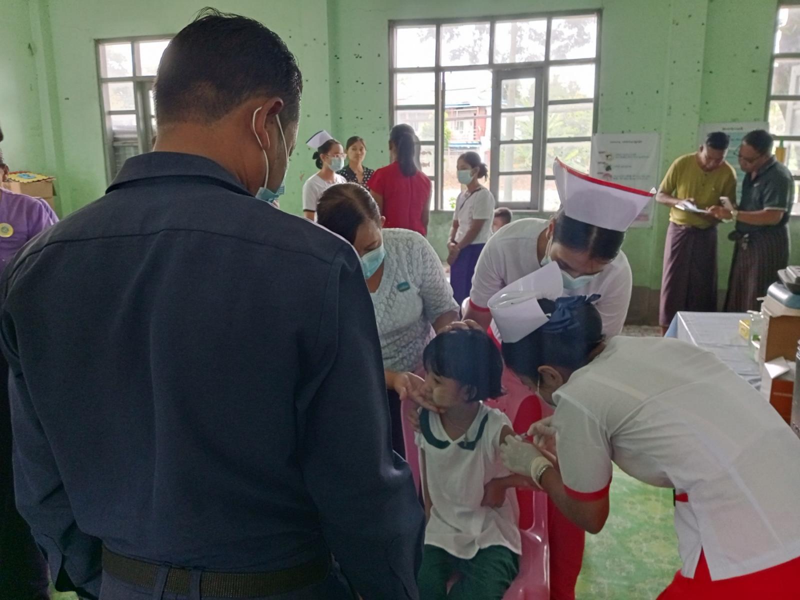 ထို့သို့ဆောင်ရွက်ရာတွင် ယမန်နေ့နံနက် (၁၀) နာရီက ဒဂုံမြို့သစ်တောင်ပိုင်းမြို့နယ် အမှတ်(၁)အခြေခံပညာအထက်တန်းကျောင်းများရှိ KG ကျောင်းသား/ ကျောင်းသူ Pfizer Comirnaty JN1 (Orange cap) ထိုးနှံပေးခြင်းနှင့် ကျောင်းအခြေပြုသွေးလွန်တုပ်ကွေးကာကွယ်နှိမ်နင်းရေး လုပ်ငန်းများအား မြို့နယ်စီမံအုပ်ချုပ်ရေးအဖွဲ့ဥက္ကဋ္ဌနှင့် အဖွဲ့ဝင်များ၊ မြို့နယ်ပြည်သူ့ကျန်းမာရေးဦးစီးဌာနနှင့် နှီးနွယ်ဌာနဆိုင်ရာများ၊မိခင်နှင့်ကလေး စောင့်ရှောက်မှုကြီးကြပ်ရေးအဖွဲ့၊မြို့နယ်အမျိုးသမီးရေးရာအဖွဲ့၊မြို့နယ်ကြက်ခြေနီတပ်ဖွဲ့၊မြို့နယ်မီးသတ်တပ်ဖွဲ့နှင့် စေတနာ့ဝန်ထမ်းများ၏ ပူးပေါင်းဆောင်နေမှုများကို ဒဂုံမြို့သစ်ခရိုင်စီမံအုပ်ချုပ်ရေးအဖွဲ့ဥက္ကဋ္ဌ ဦးအောင်ကိုနှင့် အဖွဲ့ဝင်များက ကွင်းဆင်းကြည့်ရှု အားပေးပြီး လိုအပ်သည်များ လမ်းညွှန်မှာကြားကြောင်း သတင်းရရှိသည်။ မထိုးပေးမီ ကျန်းမာရေးဝန်ထမ်းများနှင့် တာဝန်ရှိသူများက စာရင်းမှတ်တမ်းရေးသွင်းကောက်ယူခြင်း၊ ကျန်းမာရေးစစ်ဆေးပေးခြင်းများ ဆောင်ရွက်ပေး၍ ပုံမှန်အနေအထားရောက်ရှိမှသာ ကိုဗစ်-၁၉ ရောဂါကာကွယ်ဆေးများ စနစ်တကျထိုးနှံပေးပြီး ကာကွယ်ဆေးထိုးနှံပြီးသူများကိုလည်း မိနစ် ၃၀ ခန့် အနားယူစောင့်ကြည့်ပြီးမှ ပြန်လည်ထွက်ခွာစေခဲ့ကြောင်း သိရသည်။
