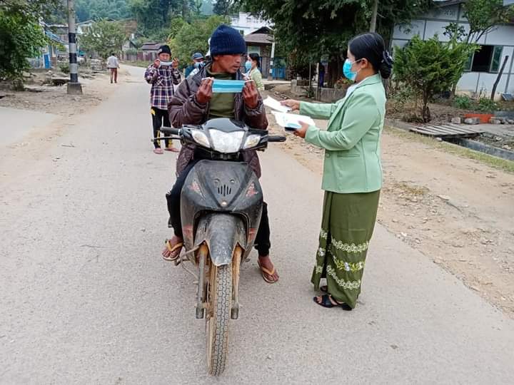 ထို့အပြင် လမ်းသွားလမ်းလာ ပြည်သူများအား နေအိမ်ပြင်ပမှ ထွက်ခွာတိုင်း Mask နှာခေါင်း စည်းများ စနစ်တကျ တပ်ဆင်သွားလာနိုင်ရန်အတွက် မြို့အုပ်ချုပ်ရေးမှူး ဦးစည်သူအောင် ဦးဆောင်ပြီး ဌာနဆိုင်ရာများ၊ မြန်မာနိုင်ငံရဲတပ်ဖွဲ့၊ မီးသတ်တပ်ဖွဲ့၊ လူမှုရေးအသင်းအဖွဲ့များ၊ ရပ်ကွက်မှူးများနှင့် ပူးပေါင်း၍ နှာခေါင်းစည်း Mask အခု(၅၀၀)ကိုလည်း အခမဲ့ဖြန့်ဝေပေးခဲ့ကြောင်း သိရသည်။