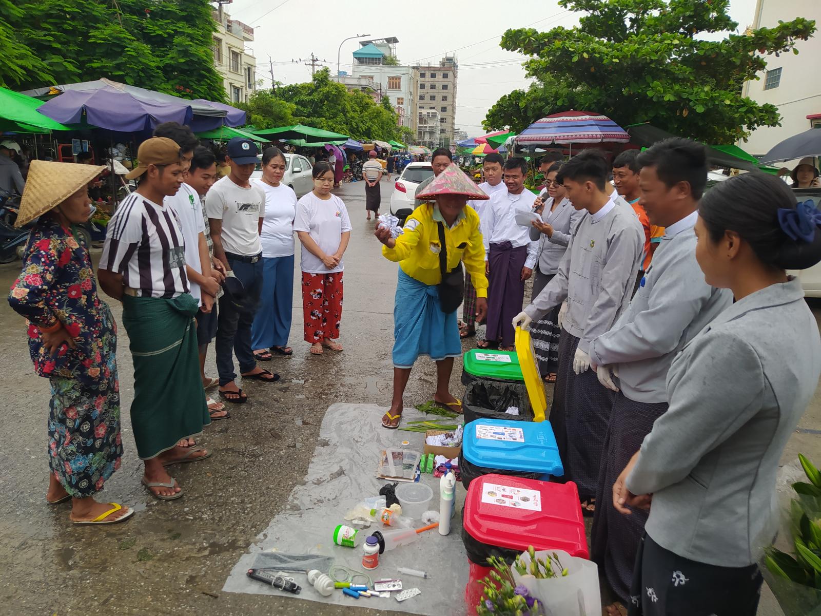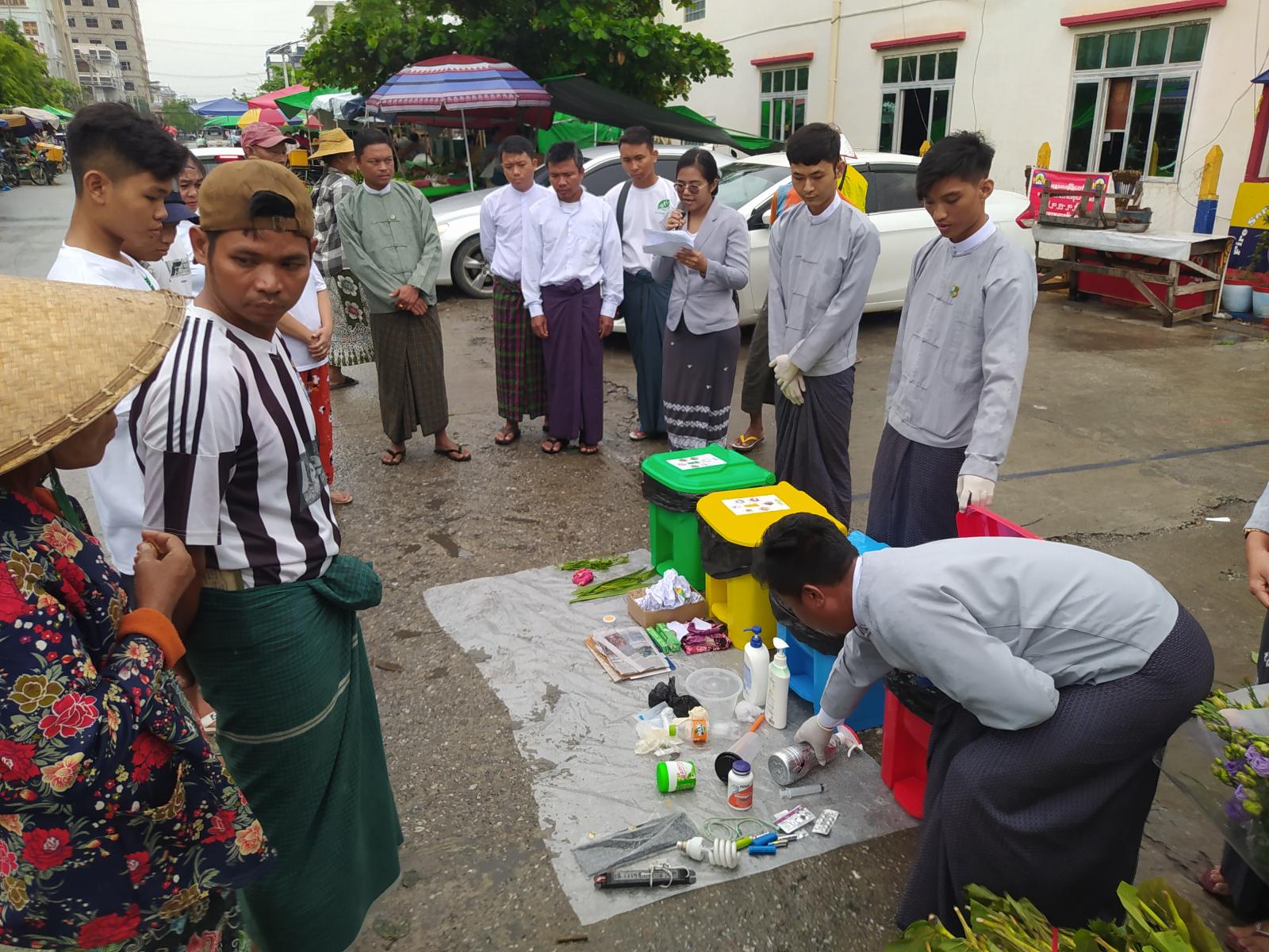 ရှေးဦးစွာ ခရိုင်ပတ်ဝန်းကျင်ထိန်းသိမ်းရေးဦးစီးဌာနမှ လက်ထောက်ညွှန်ကြားရေးမှူး ဒေါ်မို့မို့ချစ်က ရပ်ကွက်နေပြည်သူများနှင့်စျေးသူ၊ ဈေးသားများအား သဘာဝပတ်ဝန်းကျင်ထိခိုက်မှု မရှိစေရေးအတွက် ရပ်ကွက်အတွင်း အမှိုက်များစွန့်ပစ်ရာတွင် အမှိုက်စို၊ အမှိုက်ခြောက်၊ အန္တရာယ်ရှိသော အမှိုက်၊ ပလတ်စတစ်အမှိုက်များကို စနစ်တကျခွဲခြားစွန့်နိုင်ရေး၊ ရပ်ကွက်တာဝန်ရှိသူများက ရပ်ကွက်အတွင်း အမှိုက်ပုံးများ စနစ်တကျစီစဥ်ထားရှိပေးရေးနှင့် ရပ်ကွက်နေပြည်သူများမှလည်း အမှိုက်များကို အမျိုးအစားခွဲခြား၍ စနစ်တကျစွန့်ပစ်ရေးအား ရှင်းလင်းပြောကြားခဲ့သည်။