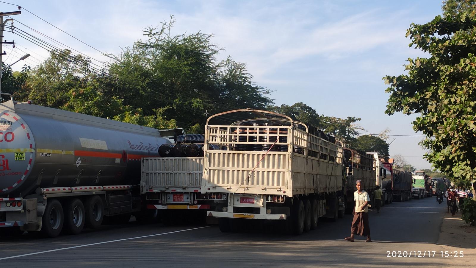 ယနေ့နံနက် ၉ နာရီခန့်က မန္တလေးတိုင်းဒေသကြီး၊ ရမည်းသင်းမြို့နယ် လက်ဆည်ကန်ကျေးရွာ အနီးတွင် 95 အမျိုးအစား လောင်စာဆီ သယ်ဆောင်မောင်းနှင်လာသည့် ဆီဘောက်ဆာ ကားတစ်စီး တိမ်းမှောက်ခဲ့ရာ မီးဘေးအန္တရာယ်ဖြစ်ပေါ်နိုင်သဖြင့် နေ့လယ် ၁၂ နာရီခန့်မှစတင်၍ ရန်ကုန်-မန္တလေးကားလမ်းမကြီးပေါ် ယာဉ်သွားလာခြင်းကို ခေတ္တရပ်ဆိုင်းထားကြောင်း သိရသည်။
