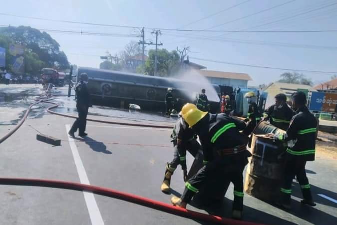 အဆိုပါ ဆီဘောက်ဆာကားတိမ်းမှောက်ရာသို့ မြို့နယ်ရဲတပ်ဖွဲ့မှူး ရဲမှူးထိန်လင်း၊ အမှတ်(၉၇) ယာဉ်ထိန်းရဲ တပ်ဖွဲ့စုရဲအုပ်တိုးတိုး၊ ခရိုင်မီးသတ်ဦးစီးမှူး ဦးအောင်ခင်ဆင့်နှင့် မီးသတ်တပ်ဖွဲ့ဝင် ၆၀ ဦးခန့် မီးသတ်ယာဉ်(၇)စီးဖြင့် အခင်းဖြစ်ပွားရာပတ်ဝန်ကျင်ကို မီးဘေးအန္တရာယ်ကင်းရှင်းစေရေး ရေဖြင့်ပက်ဖျန်းခြင်း၊ သဲယာဉ်များဖြင့် သဲပက်ဖျန်းခြင်းတို့ကို ဆောင်ရွက်လျက်ရှိသည်။ တိမ်းမှောက်သွားသည့် ဆီဘောက်ဆာကားအတွင်း ဓါတ်ဆီများကျန်ရှိနေရာ မီးပွင့်ထွက်ပေါ်နိုင်သည့် မီးဘေး အန္တရာယ်ရှိသဖြင့် ယာဉ်အသွားအလာ ခေတ္တရပ်တန့်ထားကြောင်းသိရသည်။ အဆိုပါ ယာဉ်မှ လောင်စာဆီများ သယ်ထုတ်နိုင်ရေး အမြန်စီစဉ် ဆောင်ရွက်လျက်ရှိပြီး လမ်းလွှဲစီစဉ်ပေးရန် အဆင်မပြေခြင်းကြောင့် ယာဉ်ကြောပိတ်ဆို့မှုဖြစ်ပေါ်လျက်ရှိကြောင်း၊ ရန်ကုန်မှ မန္တလေးသို့ သွားလာမည် ယာဉ်(၂၀၀)စီးခန့်နှင့် မန္တလေးမှရန်ကုန်သို့ သွားလာမည့်ယာဉ် (၁၅၀)စီးခန့် ရပ်တန့် စောင့်ဆိုင်းလျက် ရှိကြောင်း သိရသည်။