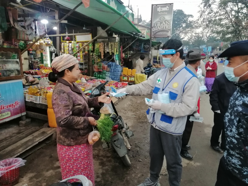 အဆိုပါ နှာခေါင်းစည်း (Mask Campaign) ပြုလုပ်ရာတွင် မြို့မစည်ပင်သာယာစျေးအတွင်း အပြင် စျေးရောင်းချနေသည့် ပြည်သူများနှင့် စျေးဝယ်လာသူများ လူစည်ကားရာ ဗိုလ်ချုပ်လမ်းမ တစ်လျှောက်သွားလာသူများအား ပါးစပ်နှာခေါင်းစည်းများ စနစ်တကျ တပ်ဆင်သုံးစွဲရေးကို အသိပေးနှိုးဆော်ခြင်းများ ဆောင်ရွက်ခဲ့ကြသည်။