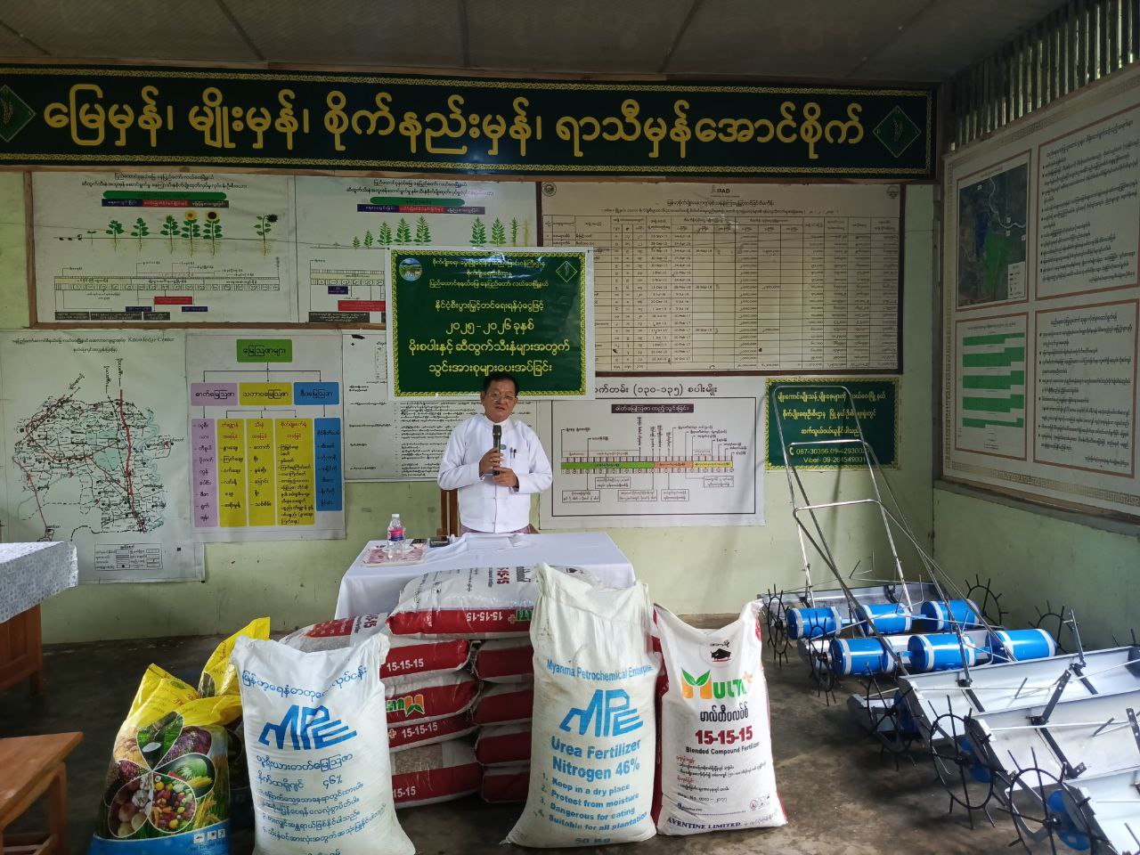 ရှေးဦးစွာ နေပြည်တော်ကောင်စီဝင် ဦးမြင့်စိုးက ဒေသခံတောင်သူများအနေဖြင့် ရာသီပြည့်သီးနှံများစိုက်ပျိုးနိုင်ရေး၊ မြေကွက်လပ်များမကျန်စိုက်ပျိုးနိုင်ရေး၊ မျိုးကောင်းမျိုးသန့် ရွေးချယ်စိုက်ပျိုးနိုင်ရေး၊ ကြဲပက်စနစ်အသုံးမပြုဘဲ လက်ဆွဲကောက်စိုက်စက်များဖြင့် စိုက်ပျိုးရန်၊ သွင်းအားစုများကို သဘာဝမြေဩဇာနှင့်ဓာတ်မြေဩဇာတို့ အချိုးကျထည့်သွင်းရန်၊ လယ်ကန်သင်း၊ ရေဆိုးထုတ်မြောင်းများရေပေးမြောင်းများ ရေစီးရေလာကောင်းမွန်ရေး ရှင်လင်းခြင်းသစ်ပင်နှင့် အမှိုက်များဖယ်ရှားခြင်းစသည့်တို့နှင့် မိမိတို့ရပ်ကွက် ကျေးရွာအုပ်စုများအတွင်း ကျန်းမာရေးနှင့်ညီညွတ်အောင်နေထိုင်နိုင်ရေးအတွက် သန့်ရှင်းသာယာလှပရေးကို အပတ်စဉ်ဆောင်ရွက်ကြရန်၊ ကျောင်းနေအရွယ်ကလေးများ ကျောင်းအပ်နိုင်ရေးဝိုင်းဝန်းကူညီပေးကြရန်၊ စဉ်ဆက်မပြတ်တန်းစဉ်ကူးပြောင်းနိုင်ရေးနှင့် စက်မှုစိုက်ပျိုးမွေးမြူရေးအထက်တန်းကျောင်းများ ကျောင်းသားများတက်ရောက်နိုင်ရေး ဝိုင်းဝန်းကူညီစောင့်ရှောက်ရန် မှာကြားခဲ့သည်။ ထို့နောက် နေပြည်တော်ကောင်စီဝင်နှင့် တာဝန်ရှိသူများက နိုင်ငံ့စီးပွားမြှင့်တင်ရေးရန်ပုံငွေဖြင့် မိုးစပါးနှင့် ဆီထွက်သီးနှံစိုက်တောင်သူများအား နိုင်ငံ့စီးပွားမြှင့်တင်ရေးရန်ပုံငွေဖြင့် သွင်းအားစုများနှင့် မျိုးစေ့ချကိရိယာများ ပေးအပ်သည်။