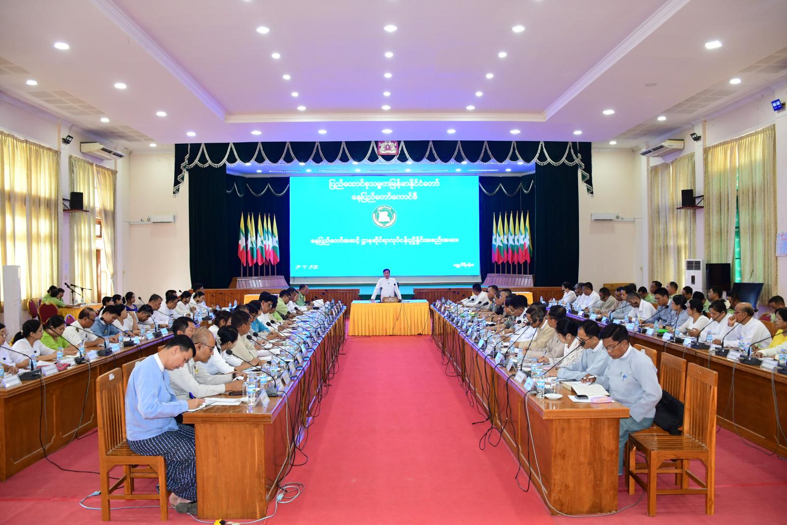ဦးစွာ နေပြည်တော်ကောင်စီဥက္ကဋ္ဌ ဦးသန်းထွန်းဦးက အမှာစကားပြောကြားရာတွင် ငလျင်ဘေးပြန်လည်ထူထောင်ရေးနှင့် ပြန်လည်တည်ဆောက်ရေးလုပ်ငန်းများကို အရှိန်အဟုန်ဖြင့်ဆောင်ရွက်ရေး၊ ပြန်လည်ပြုပြင်တည်ဆောက်သည့် အဆောက်အဦများ၊ လမ်းတံတားများကို ငလျင်ဘေးဒဏ်ခံနိုင်မှုရှိအောင် စံချိန်၊ စံညွှန်းနှင့်အညီ စနစ်တကျတည်ဆောက်ရေး၊ ရုံးလုပ်ငန်းပိုင်းဆိုင်ရာ စာရွက်စာတမ်းများ၊ သတင်းအချက်အလတ်များကို ပေါက်ကြားမှုမရှိစေရန် လုံခြုံရေးအထူးဂရုပြုဆောင်ရွက်ရေး၊ သဘာဝဘေးများကြိုတင်ကာကွယ်ရေးအတွက် လူ၊ စက်၊ ယာဉ်၊ ယန္တရားများကို စနစ်တကျကြိုတင်စုဖွဲ့ပြင်ဆင်ထားရေးနှင့် ဇတ်တိုက်လေ့ကျင့်မှုများ အမြဲမပြက်ဆောင်ရွက်ရေး၊ စိုက်ပျိုးရေး၊ မွေးမြူရေးထွက်ကုန်များကိုအခြေခံပြီး ကုန်ထုတ်လုပ်ငန်းများနှင့် MSME လုပ်ငန်းများဖွံ့ဖြိုးတိုးတက်အောင်ဆောင်ရွက်ရေး၊ စိုက်ပျိုးရေးတွင် တစ်နှစ်သုံးသီးစိုက်ပျိုးနိုင်ရေး၊ သီးနှံများပန်းတိုင်အထွက်နှုန်းရရှိရေး၊ မျိုး၊ မြေ၊ ရေ နည်းလမ်းများနှင့်အညီ စနစ်တကျစိုက်ပျိုးဆောင်ရွက်ရေး၊ မွေးမြူရေးတွင် အသားတိုးနွား၊ ဒေသနွား၊ ဆိတ်နှင့် ဥစားကြက်များတိုးချဲ့မွေးမြူနိုင်ရေးနှင့် တိရိစ္ဆာန်အစာ၊ မြက်နှင့် နှံစားပြောင်းများကို ကိုယ်တိုင်စိုက်ပျိုးကျွေးမွေးနိုင်ရေး၊ ကုန်ဈေးနှုန်းတည်ငြိမ်ရေးအတွက် ကုန်စည်စီးဆင်းမှုများ မှန်ကန်မြန်ဆန်ပြီး တရားမဝင်ကုန်ပစ္စည်းများသယ်ဆောင်မှုမရှိစေရေး၊ ဒေသဖွံ့ဖြိုးရေးလုပ်ငန်းများဆောင်ရွက်ရန်နှင့် ငလျင်ဘေးပြန်လည်ထူထောင်ရေးလုပ်ငန်းများ ဆောင်ရွက်ရန်အတွက် အခွန်ရငွေများတိုးတက်ရရှိနိုင်ရေး၊ နေပြည်တော်အတွင်း စိမ်းလန်းစိုပြေစေရေးနှင့် သဘာဝပတ်ဝန်းကျင်ထိန်းသိမ်းနိုင်ရေးအတွက် သစ်ပင်များ တိုးချဲ့စိုက်ပျိုးနိုင်ရေး၊ မြို့၊ ရွာများအတွင်း သန့်ရှင်းသာယာလှပရေးနှင့် ရေစီးရေလာကောင်းမွန်စေရေးအတွက် အမြဲမပြတ်ဆောင်ရွက်နိုင်ရေး၊ ပါတီစုံဒီမိုကရေစီအထွေထွေရွေးကောက်ပွဲကျင်းပနိုင်ရေးအတွက် မဲစာရင်းများ မှန်ကန်တိကျစွာ ပြုစုဆောင်ရွက်ရန်နှင့် ဆန္ဒမဲပေးပိုင်ခွင့်ရှိသူအားလုံး မဲပေးနိုင်ရေး၊ နှစ်စဉ်စီမံကိန်းရည်မှန်းချက်များကို လျာထားချက်ကျော်လွန်အောင် အကောင်အထည်ဖော်ဆောင်ရွက်နိုင်ရေး၊ ကျောင်းနေအရွယ်ကလေးအားလုံး ကျောင်းနေနိုင်ရေးနှင့် တန်းစဥ်ကူးပြောင်းမှု မြင့်မားစေရေး၊ မိုးရာသီတွင် ဖြစ်ပွားတက်သော ကူးစက်ရောဂါများမဖြစ်ပွားစေရေးအတွက် ကြိုတင်ကာကွယ်ခြင်းလုပ်ငန်းများ အမြဲမပြတ်ဆောင်ရွက်ရေး၊ ဌာနဆိုင်ရာများမှ မိမိတို့၏လုပ်ငန်းတာဝန်များအပြင် ဒေသဖွံ့ဖြိုးတိုးတက်ရေးအတွက် ဝိုင်းဝန်းပူးပေါင်းဆောင်ရွက်