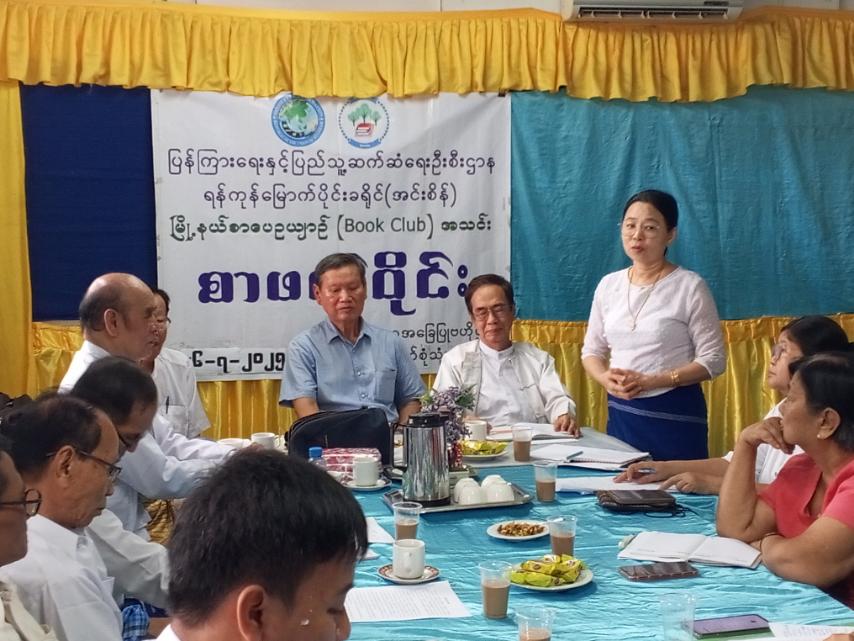 ရန်ကုန်တိုင်းဒေသကြီး၊ အင်းစိန်ခရိုင်၊ အင်းစိန်လူထုအခြေပြုဗဟိုဌာနတွင် ဇူလိုင် ၂၆ ရက်နေ့လယ်ပိုင်းက ဆရာကြီးမောင်ခင်မင်(ဓနုဖြူ)ရေးသားသည့် မြန်မာစာ၊ မြန်မာစကားစာအုပ်ဖြင့် Book Club အဖွဲ့ စာဖတ်ဝိုင်း ကျင်းပပြုလုပ်ခဲ့ကြောင်း သိရသည်။