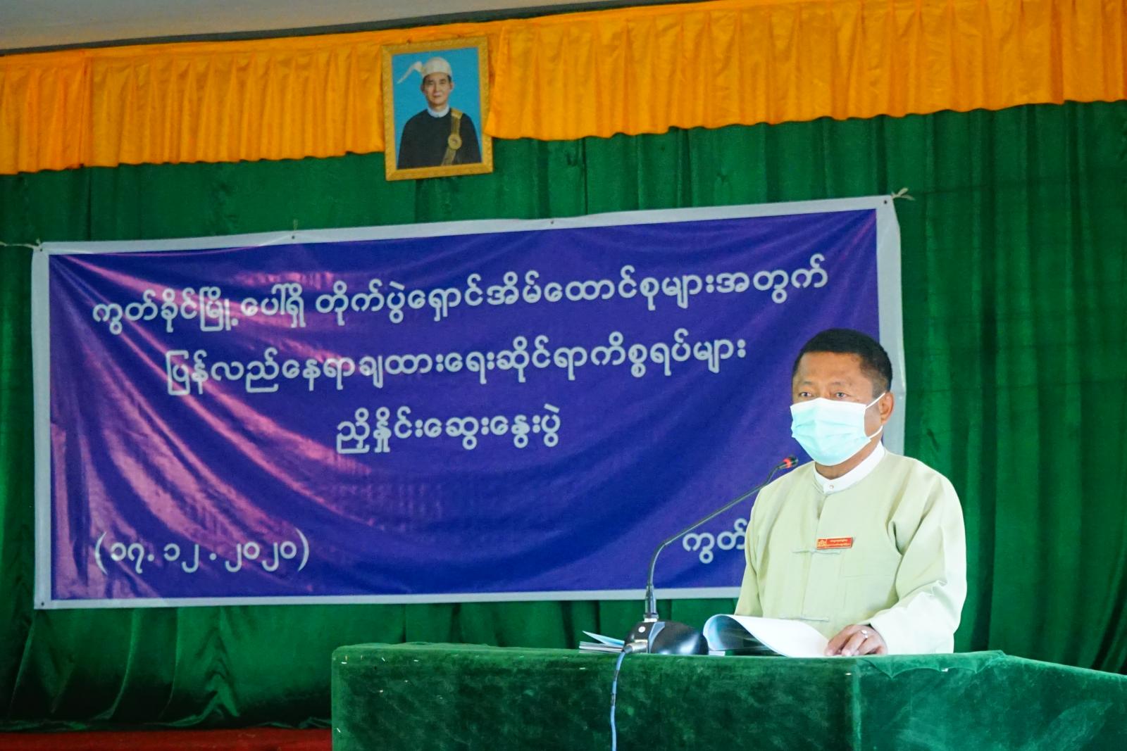 ရှမ်းပြည်နယ်(မြောက်ပိုင်း)၊ ကွတ်ခိုင်မြို့ပေါ်ရှိတိုက်ပွဲရှောင် အိမ်ထောင်စုများအတွက် ပြန်လည် နေရာချထား ရေးဆိုင်ရာ ကိစ္စရပ်များကို ယမန်နေ့နံနက်ပိုင်းက မြို့နယ် ပြည်ထောင်စုခန်းမ၌ ညှိနှိုင်းဆွေးနွေးမှုများ ပြုလုပ် ဆောင်ရွက်ခဲ့သည်။