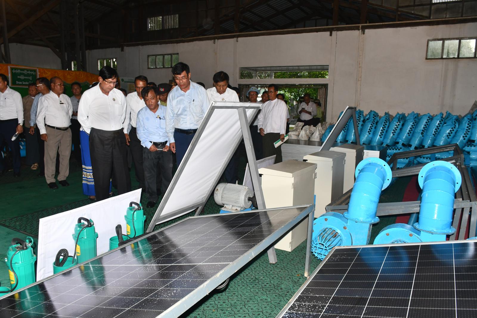 ယင်းနောက် တိုင်းဒေသကြီး ဝန်ကြီးချုပ်နှင့် အဖွဲ့က ပြသထားသည့် စိုက်ပျိုးရေးသုံးသွင်းအားစုများ၊ စိုက်ပျိုးရေးသုံးစက်ပစ္စည်းများနှင့် ဆိုလာများစသည်တို့ကို လှည့်လည်ကြည့်ရှုခဲ့ကြကြောင်း သိရသည်။