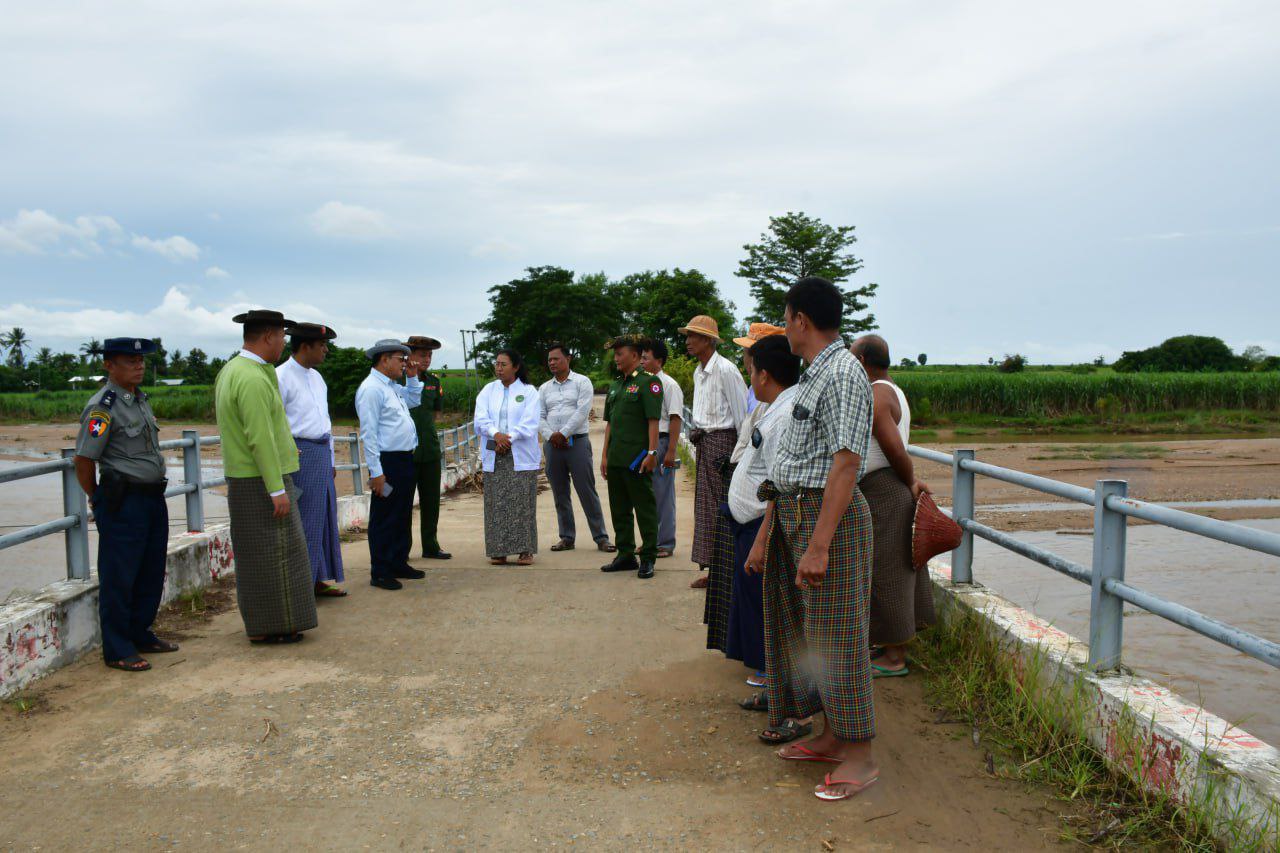 နေပြည်တော်ကောင်စီဝင် ဗိုလ်မှူးကြီး ရဲမိုးနှင့် ဦးမြင့်စိုးတို့သည် တာဝန်ရှိသူများနှင့်အတူ ယမန်နေ့မွန်းလွဲပိုင်းက လယ်ဝေးမြို့နယ်အတွင်း မိုးသည်းထန်စွာရွာသွန်းမှုကြောင့်၊ သစ်ကြိမ်းကျေးရွာအနီးရှိ မဲဟော်ချောင်းတံတား ထိခိုက်ပျက်စီးမှုအခြေအနေများအား ကွင်းဆင်းစစ်ဆေးခဲ့သည်။
