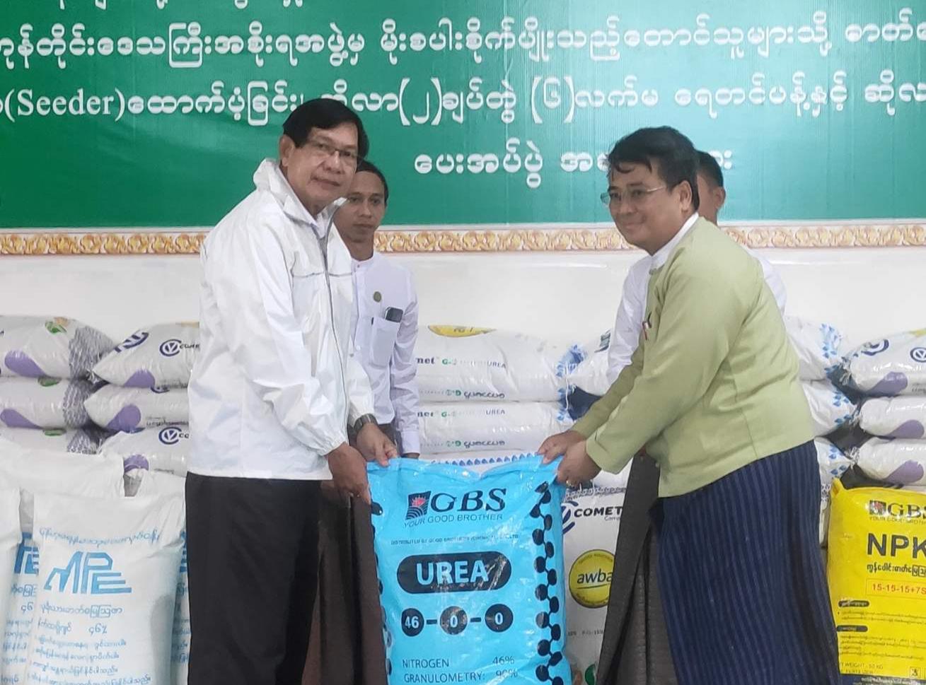 ရှေးဦးစွာ ရန်ကုန်တိုင်းဒေသကြီးအစိုးရအဖွဲ့ဝင် စီးပွားရေးရာဝန်ကြီး ဦးမျိုးမြင့်အောင်က အမှာစကားပြောကြားပြီ တိုင်းဒေသကြီးအစိုးရအဖွဲ့ ဝန်ကြီးချုပ် ဦးစိုးသိန်းနှင့် ဝန်ကြီးများက သွင်းအားစုနှင့် ထောက်ပံ့ပစ္စည်းများကို သန်လျင်ခရိုင်စီမံအုပ်ချုပ်ရေးအဖွဲ့ဥက္ကဋ္ဌ ဦးအောင်သိုက်ဝင်း၊ ခရိုင်အတွင်းရှိ မြို့နယ်စီမံအုပ်ချုပ်ရေးအဖွဲ့ဥက္ကဋ္ဌများ ၊မိုးစပါးစိုက်တောင်သူများအား ထောက်ပံ့ပေးအပ်ကြသည်။