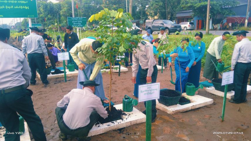 ရန်ကုန်တိုင်းဒေသကြီး၊ တိုက်ကြီးမြို့နယ်တွင် ပတ်ဝန်းကျင်စိမ်းလန်းစိုပြည်စေရေးရည်ရွယ်၍ ၂၀၂၅ ခုနှစ်၊ မြို့နယ်အဆင့် မိုးရာသီသစ်ပင်စိုက်ပျိုးပွဲကို ယမန်နေ့ နံနက် ၇ နာရီခွဲက ဘူတာရပ်ကွက်၊ ဂျိုးဖြူဘောလုံးကွင်းရှေ့၌ ကျင်းပသည်။